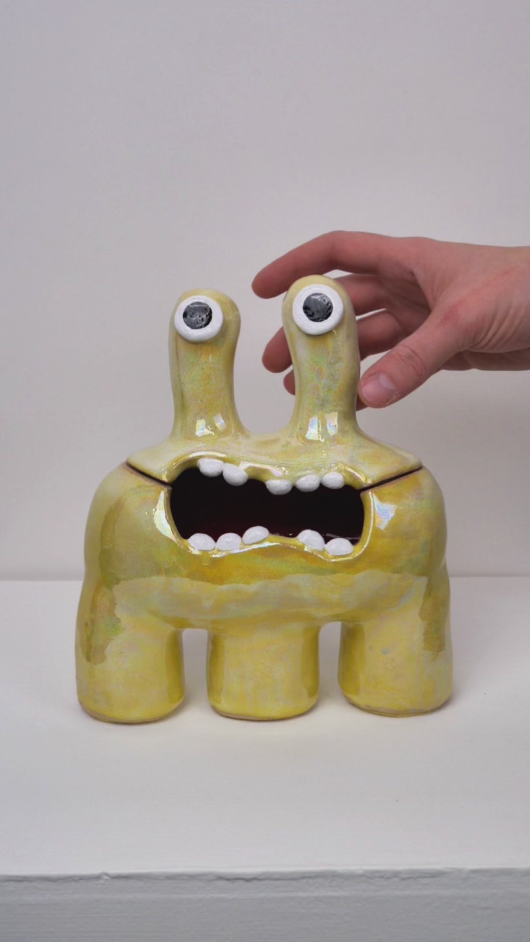 This monster is one of our most classic forms. The 'Acer' monster doubles as a ceramic pot - perfect for storing all of your trinkets, sweets or any other goodies! The yellow pearlescent glaze brings a joyous feeling to any space.