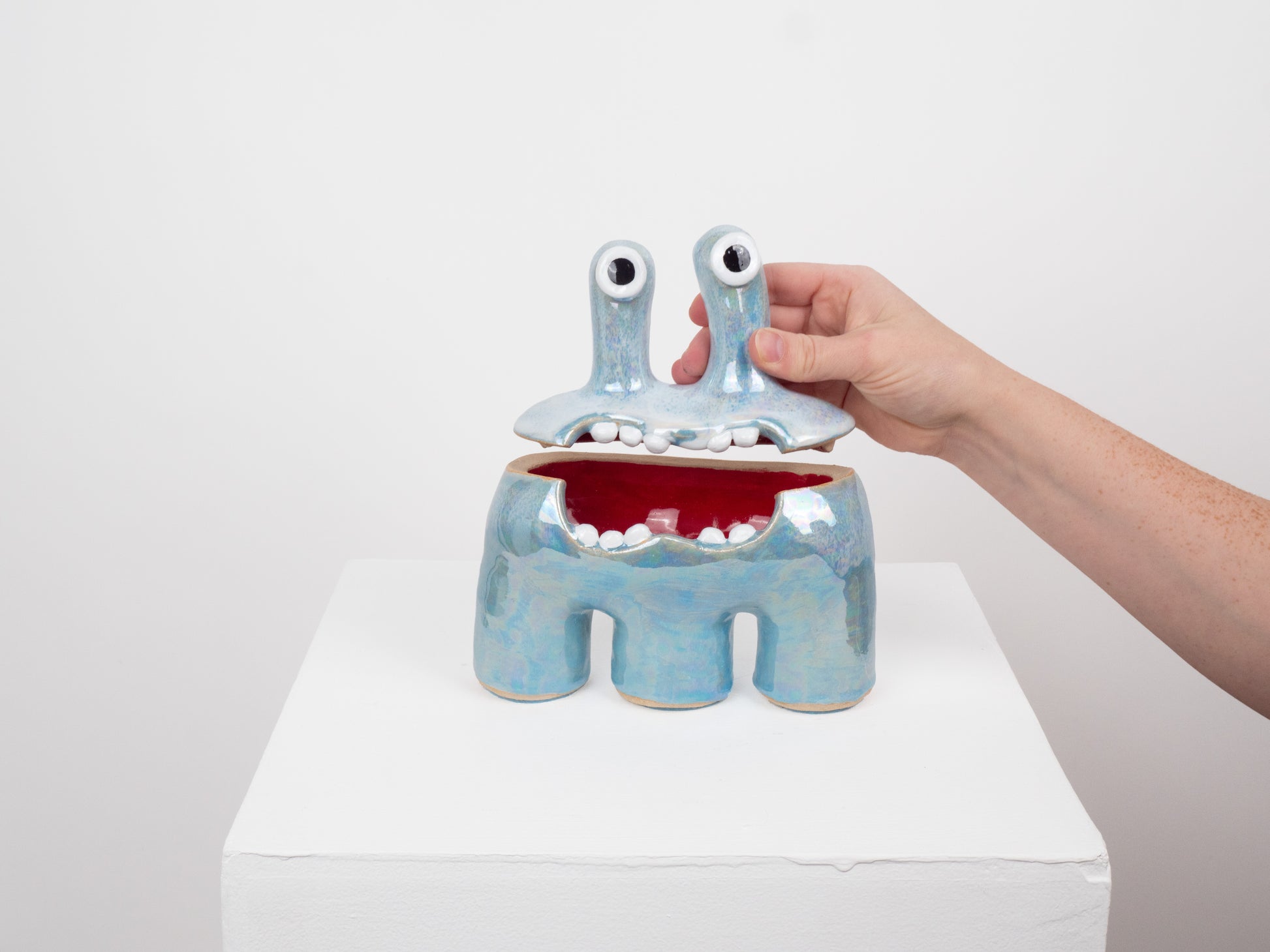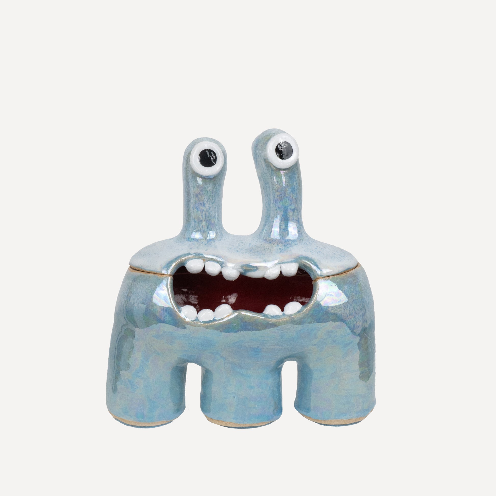 This monster is one of our most classic forms. The 'Acer' monster doubles as a ceramic pot - perfect for storing all of your trinkets, sweets or any other goodies! The light blue glaze with a pearlescent finish brings a joyous feeling to any space.