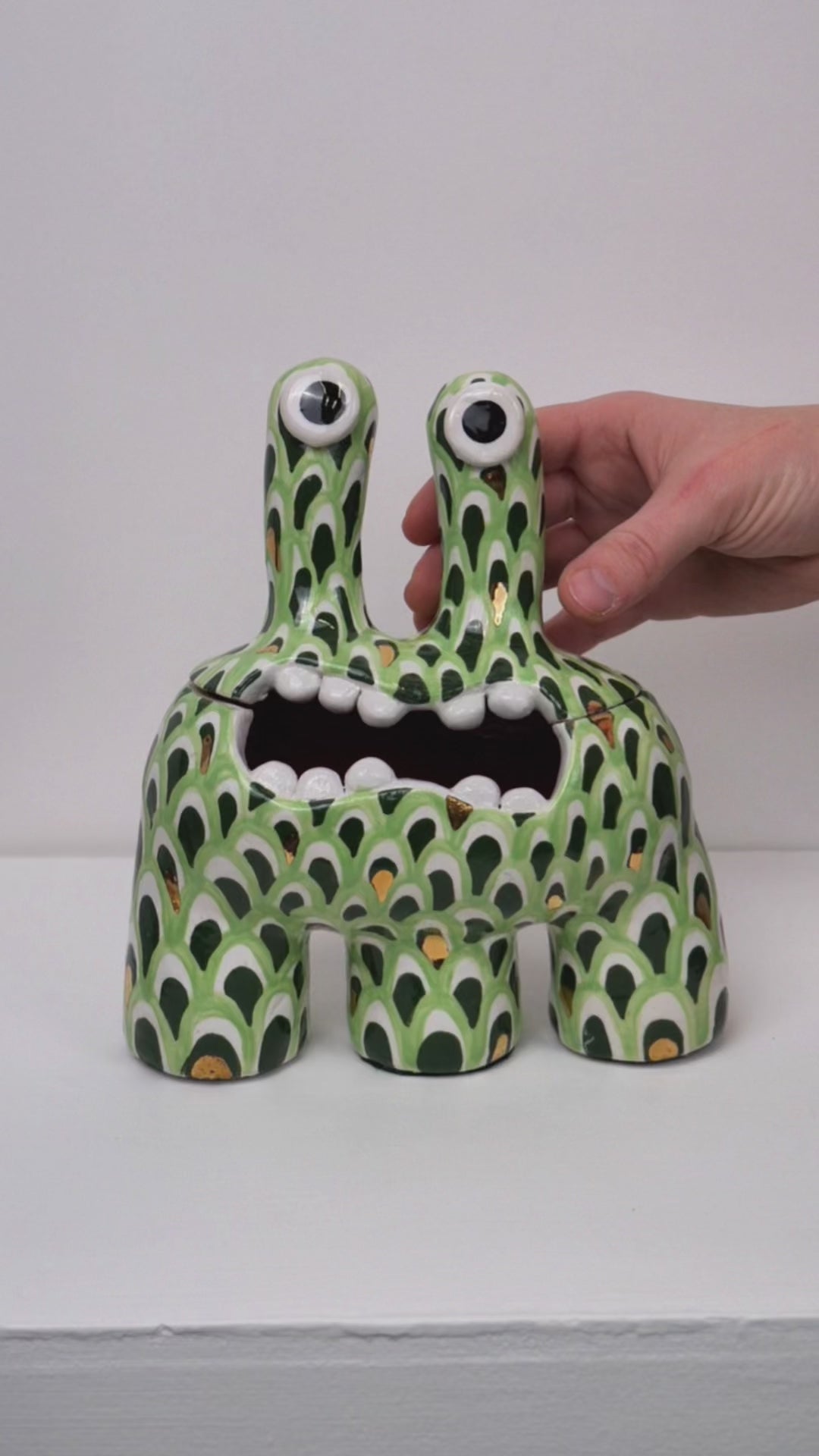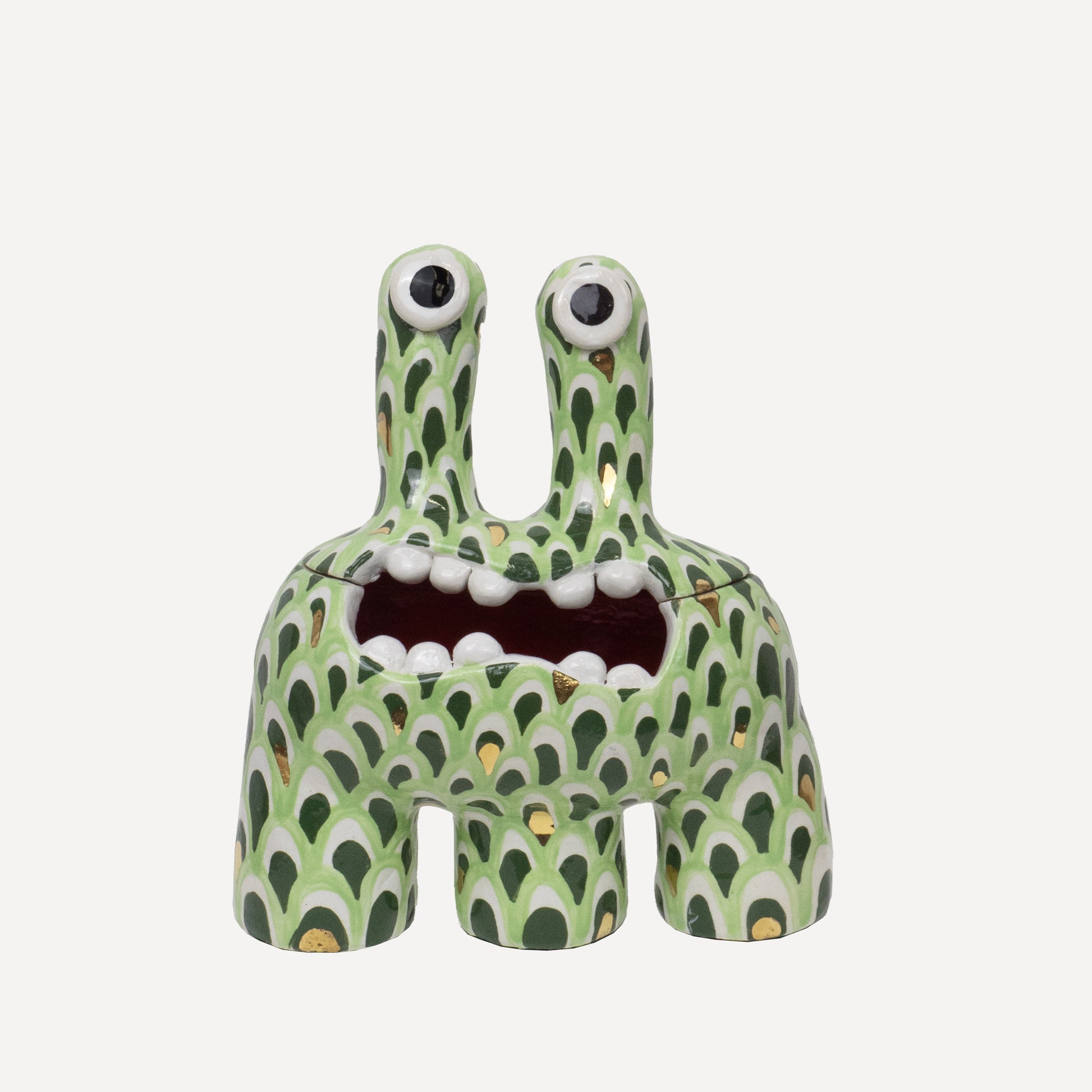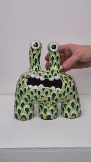 This monster is one of our most classic forms. The 'Acer' monster doubles as a ceramic pot - perfect for storing all of your trinkets, sweets or any other goodies! The hand painted petal patten glaze brings a joyous feeling to any space.