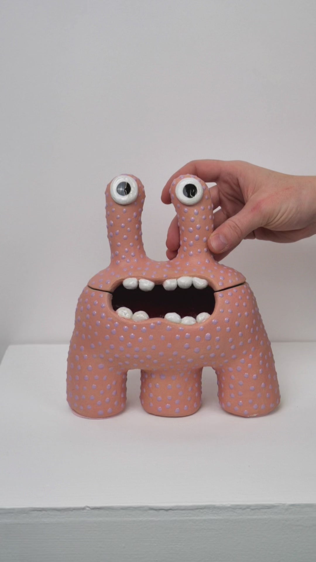 This monster is one of our most classic forms. The 'Acer' monster doubles as a ceramic pot - perfect for storing all of your trinkets, sweets or any other goodies! The pink and lilac glaze brings a joyous feeling to any space.