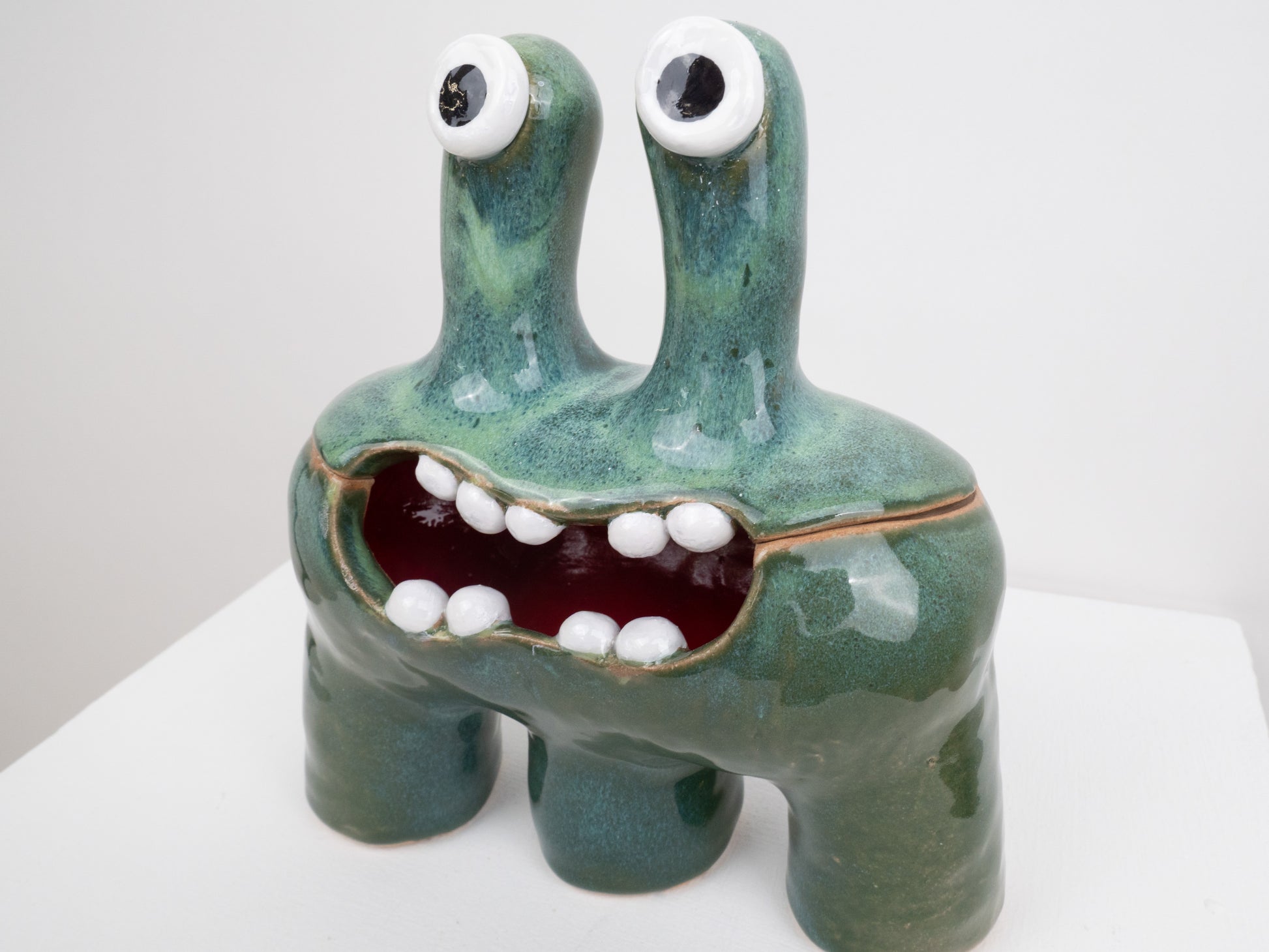 This monster is one of our most classic forms. The 'Acer' monster doubles as a ceramic pot - perfect for storing all of your trinkets, sweets or any other goodies! The 'Pine' glaze brings a joyous feeling to any space.