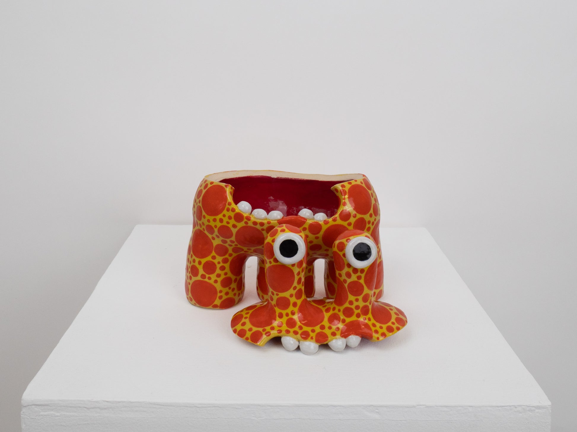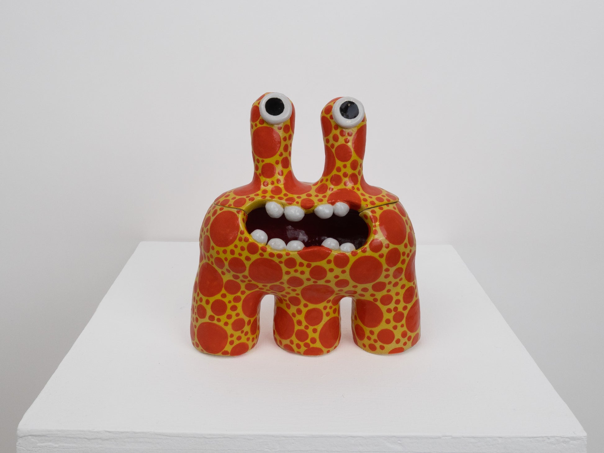 This monster is one of our most classic forms. The 'Acer' monster doubles as a ceramic pot - perfect for storing all of your trinkets, sweets or any other goodies! The colourful orange and yellow spotty pattern brings a joyous feeling to any space.