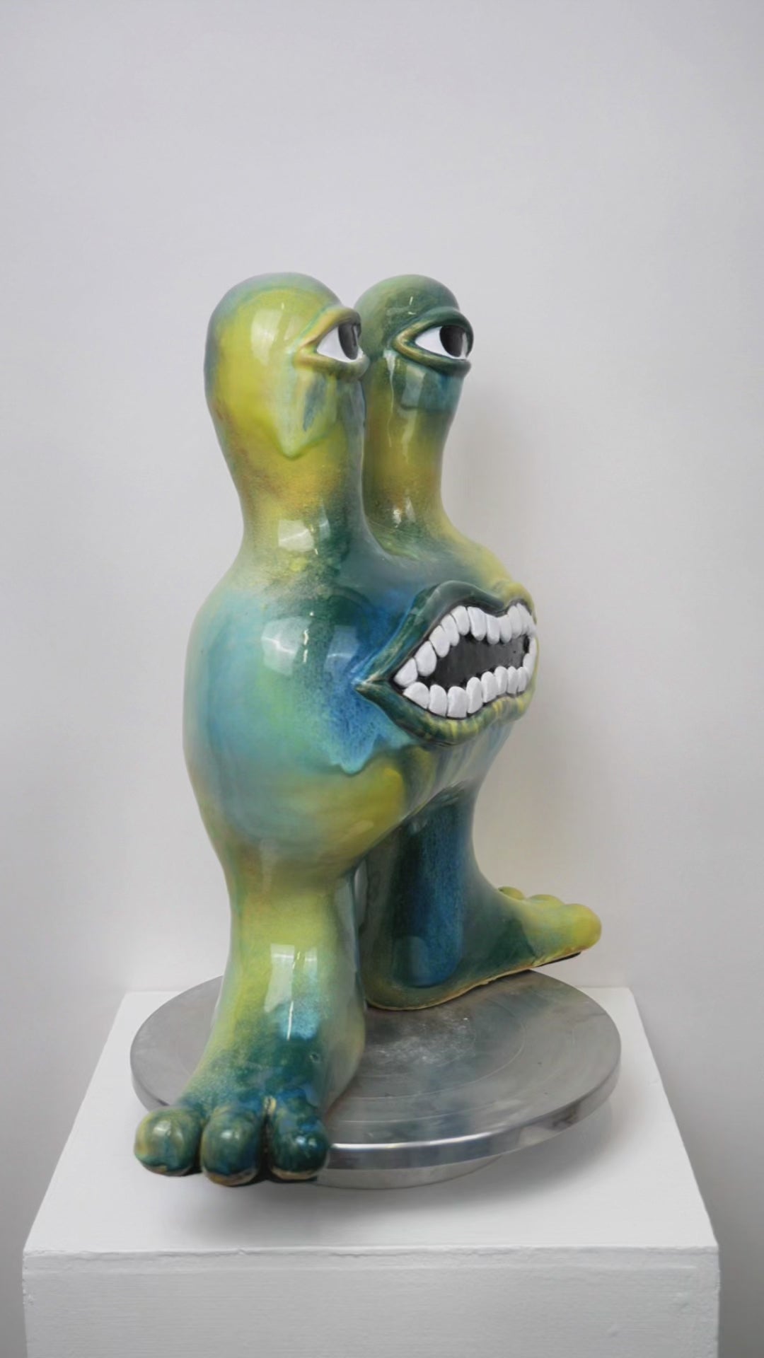 Meet Bjork, a two-eyed, big-grinned Monster full of cheeky charm. With its glossy blend of ocean blues and sunny yellows, Bjork brings a burst of playful energy to any room — a joyful reminder to embrace your quirks and smile through the chaos.