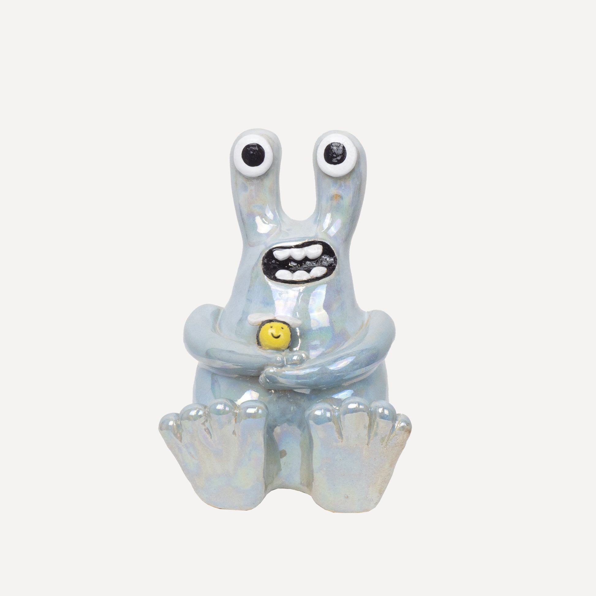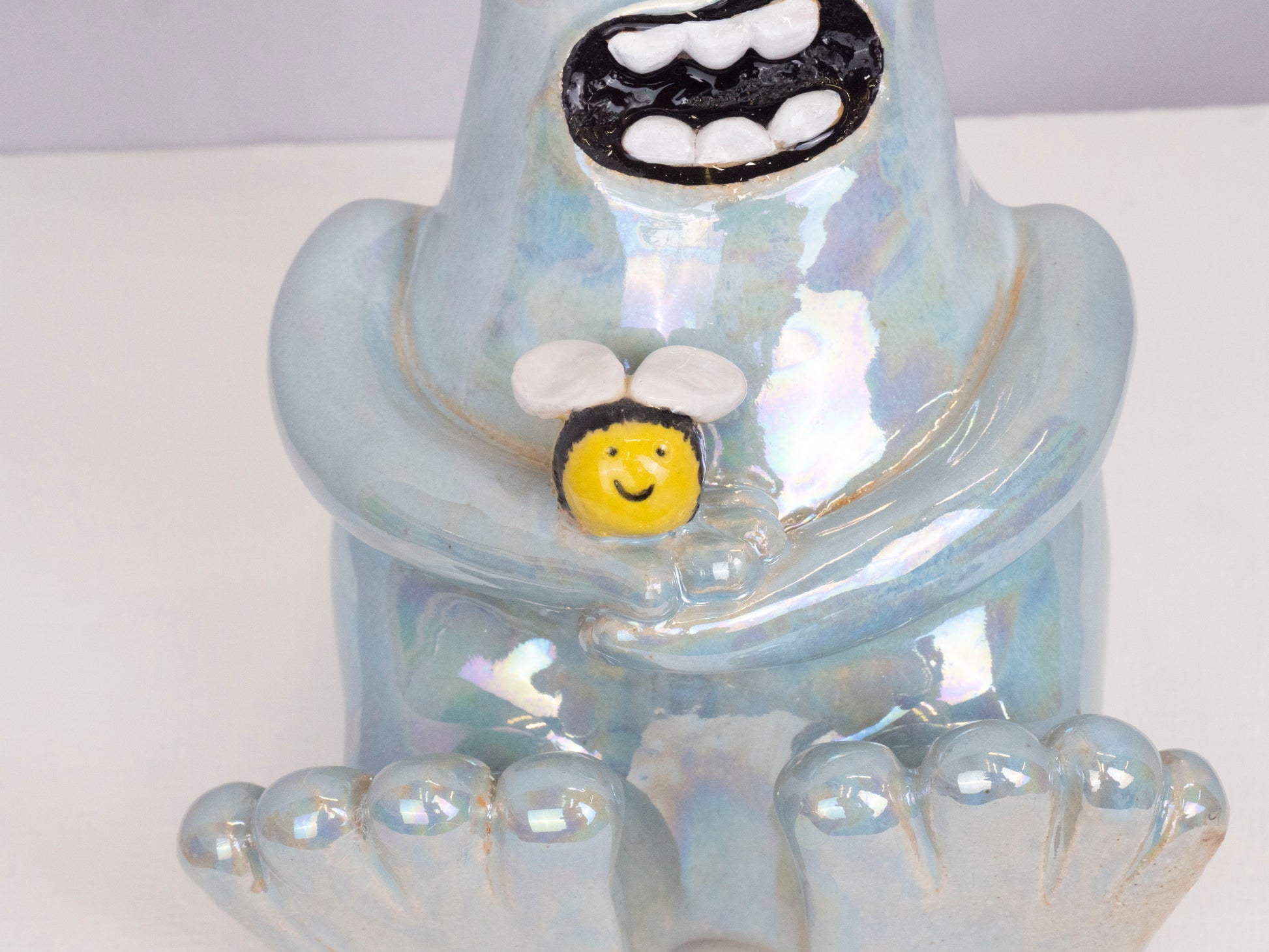 'Buddy with a Bee' is a handmade sculpture finished with a light blue glaze with a pearlescent finish. Great for you or your favourite people, our Buddy will be sure to add love and joy to anyone's day.