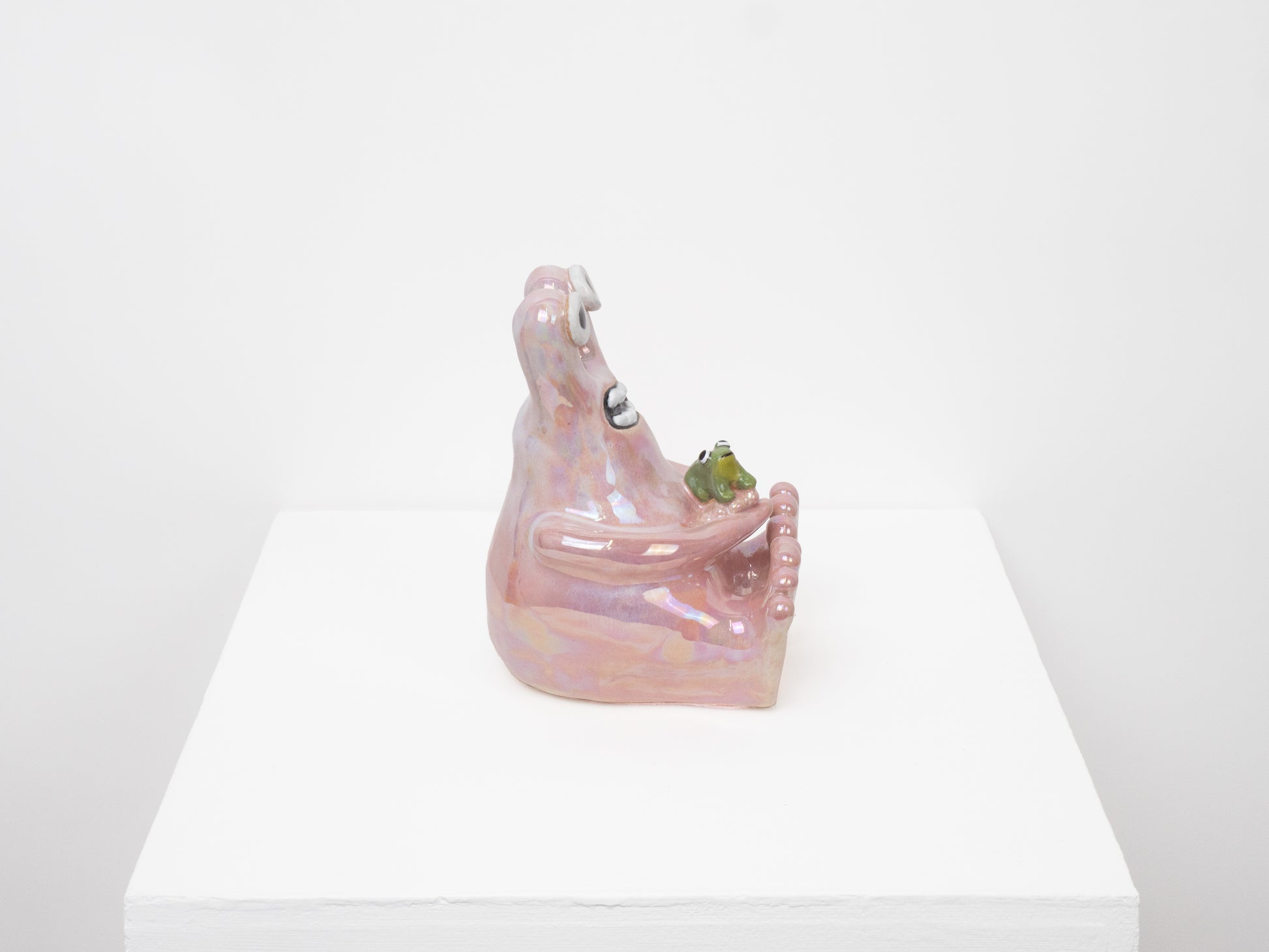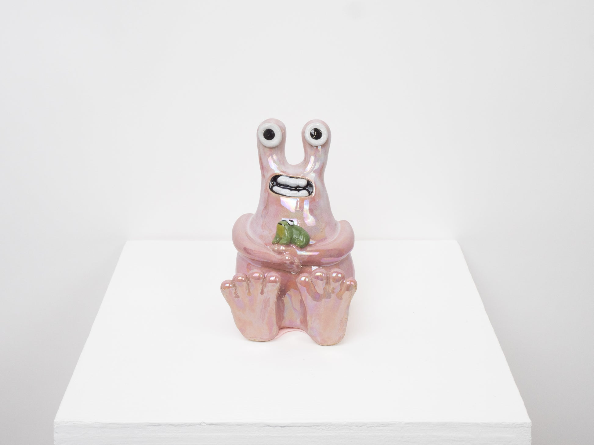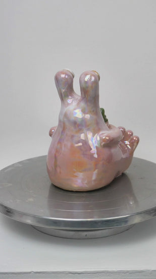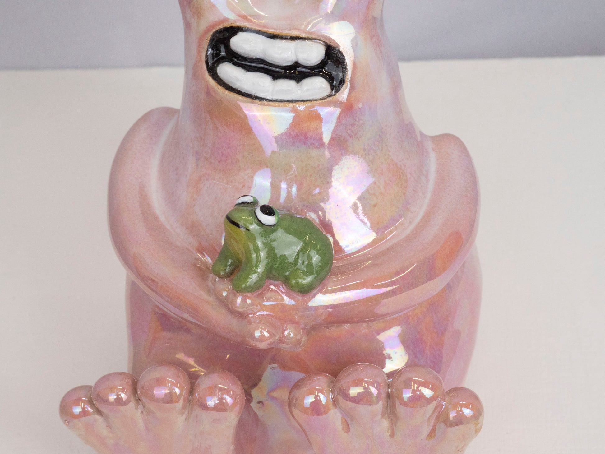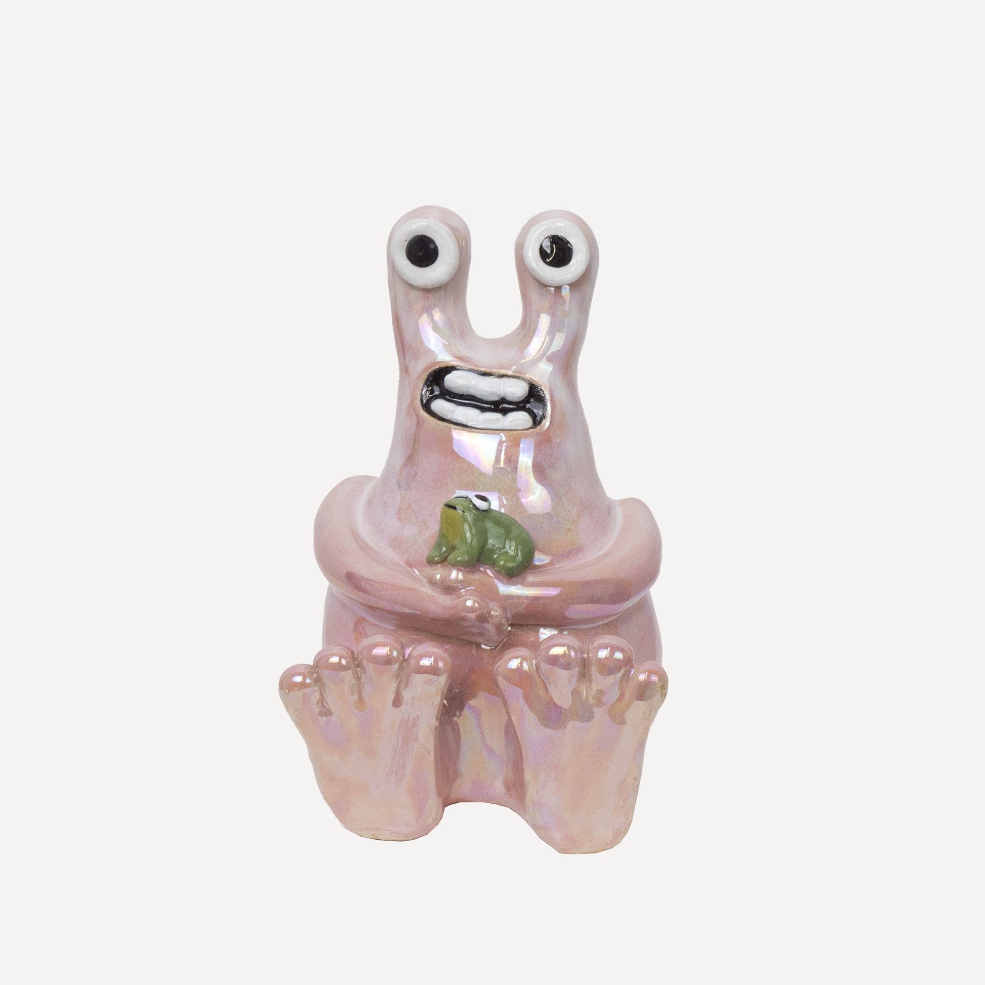 'Buddy' is a handmade sculpture holding a frog finished with a pink pearlescent glaze. Great for you or your favourite people, our Buddy will be sure to add love and joy to anyone's day.