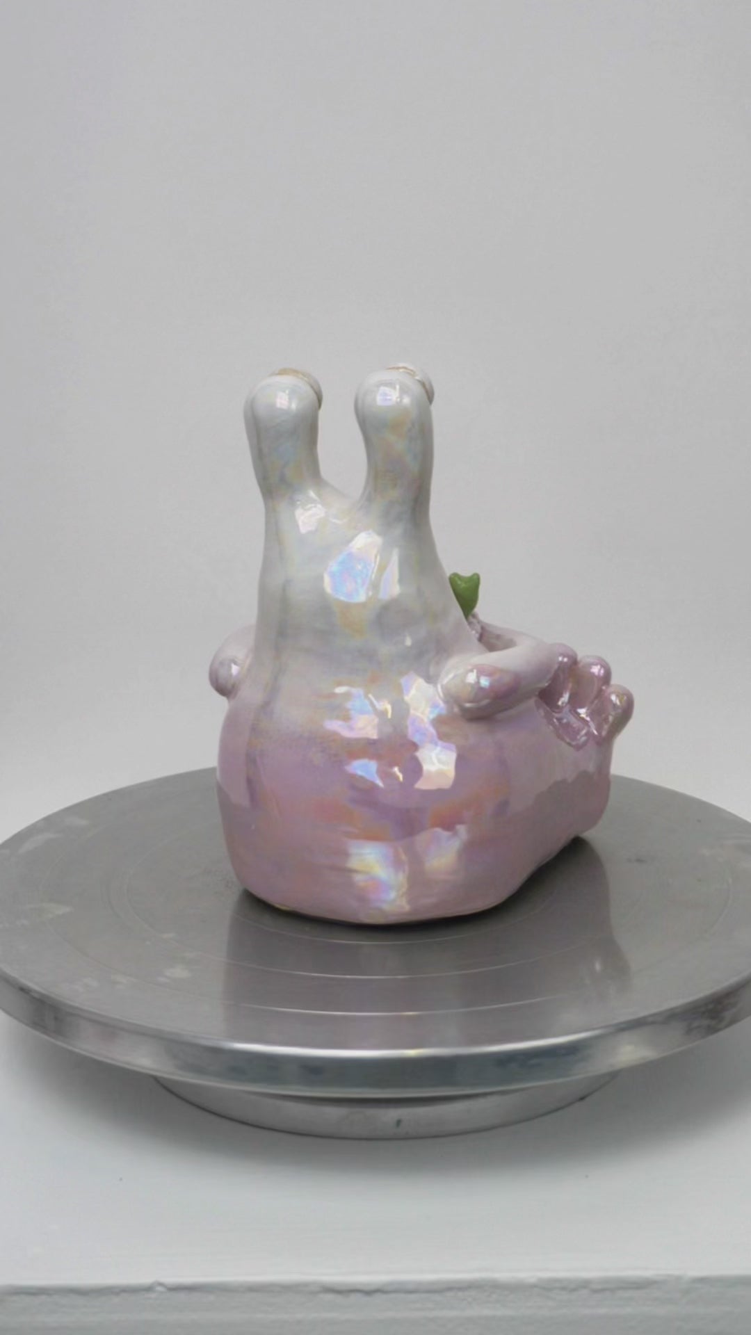 'Buddy' is a handmade sculpture finished with a white to purple pearlescent glaze . Great for you or your favourite people, our Buddy will be sure to add love and joy to anyone's day.