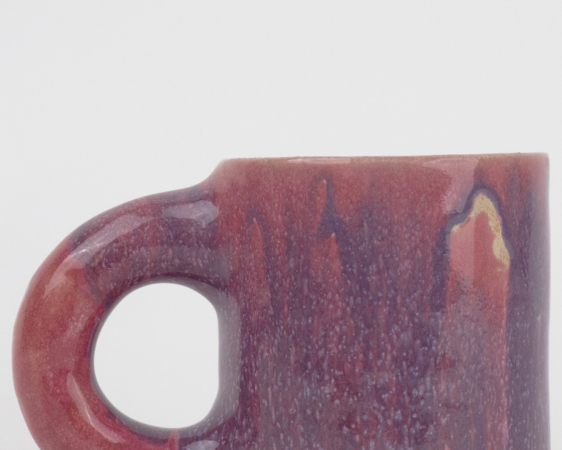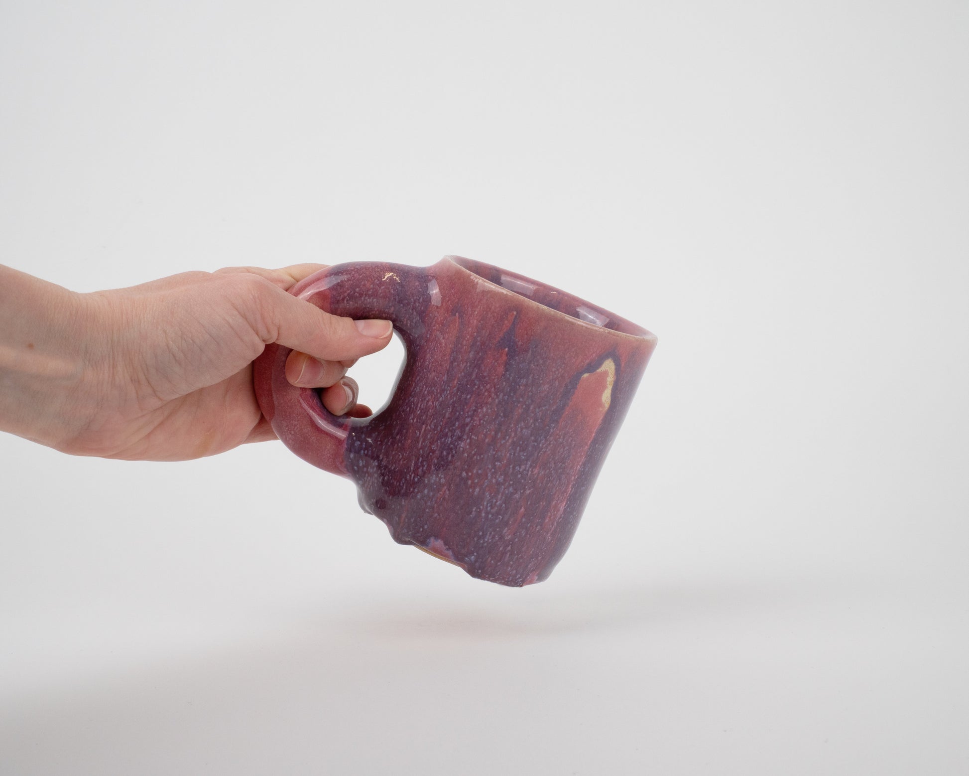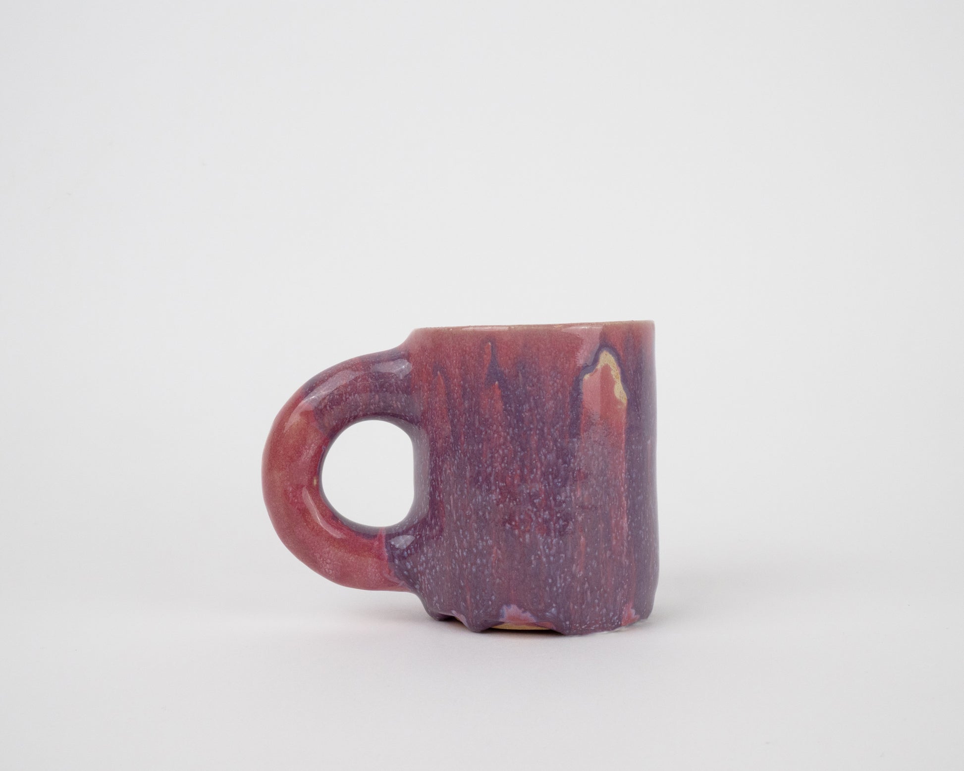 This handcrafted ceramic mug is a perfect blend of art and functionality. Featuring a chunky handle and a stunning purple-pink glaze with a smooth glossy finish, it is designed for comfort and style. Whether you are sipping your morning coffee or unwinding with tea, this mug will add a fun touch to any routine.