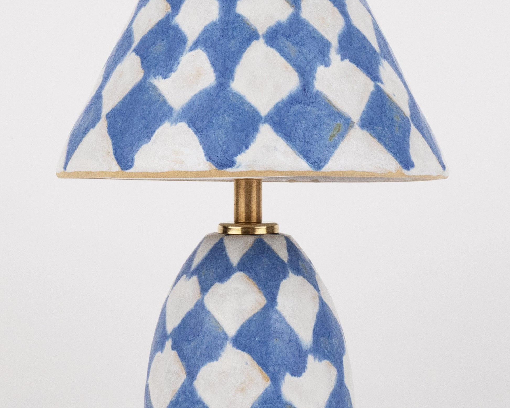 Classy yet playful, this unique handmade ceramic lamp features an abstract diamond pattern and a satin glaze. Its eye-catching design will be sure to add a warm, artistic touch to any space.