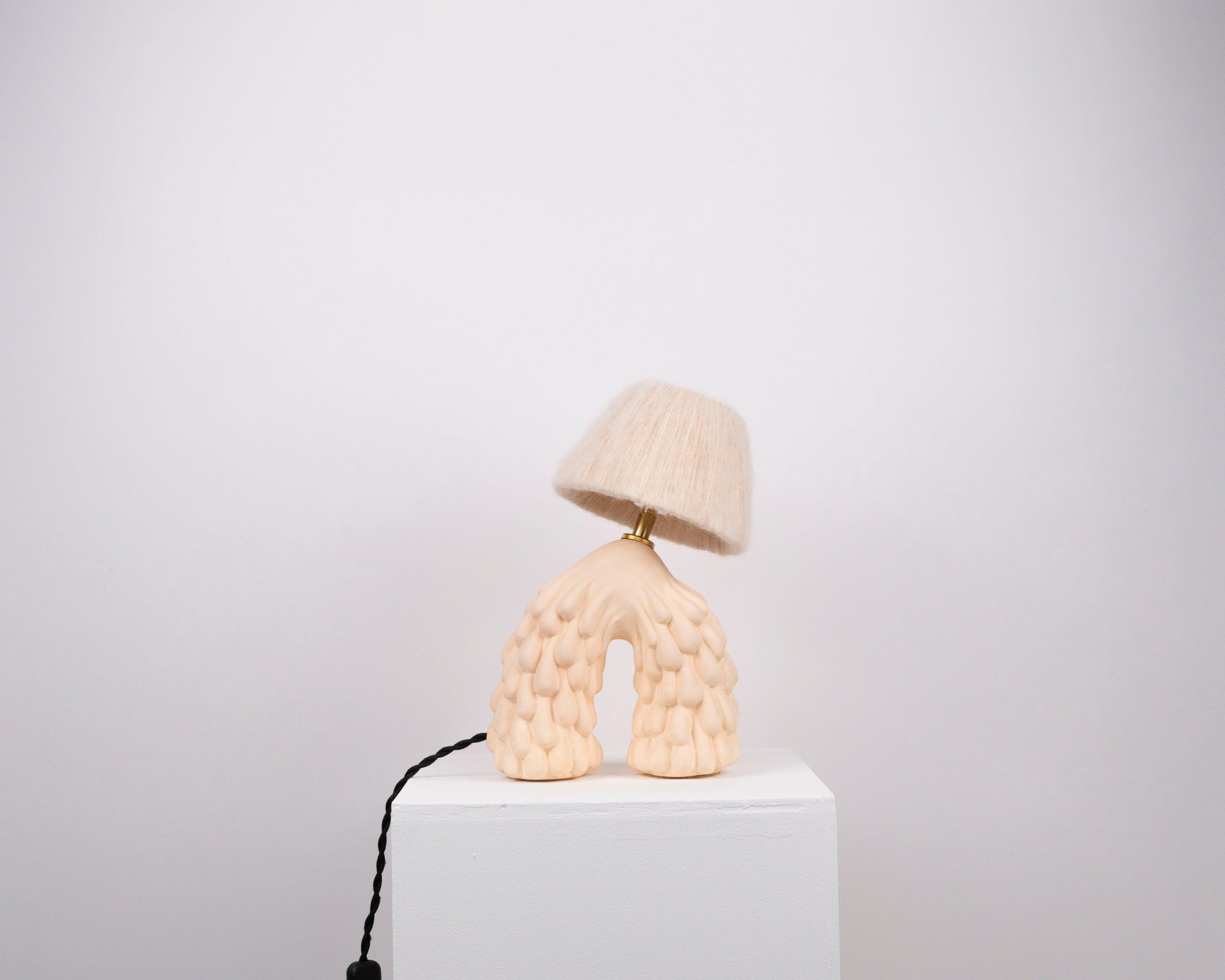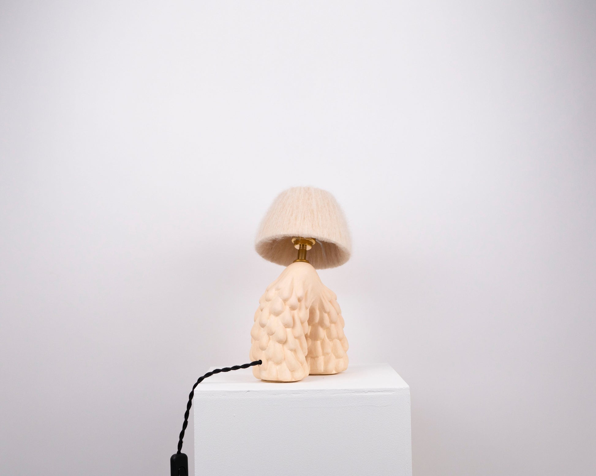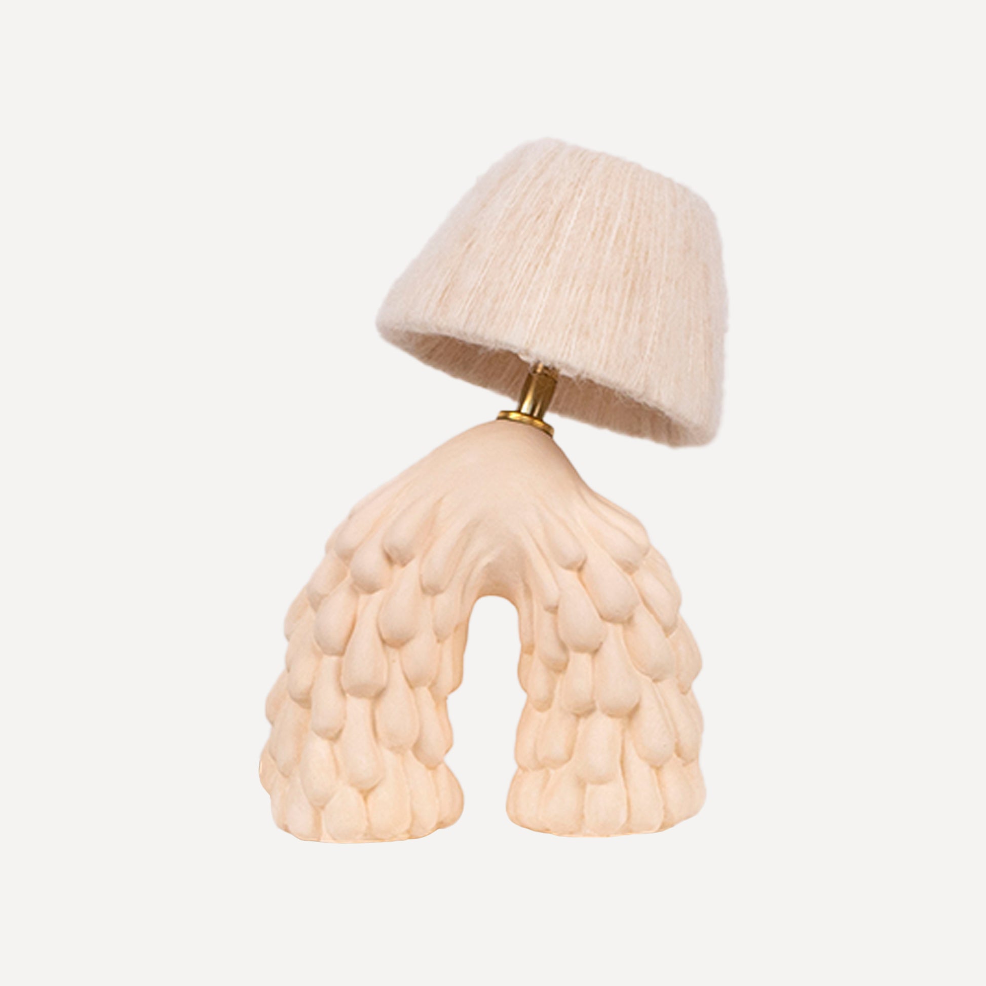 Handmade ceramic Cream lamp base with a matte finish paired with a matching Off-White wool lampshade