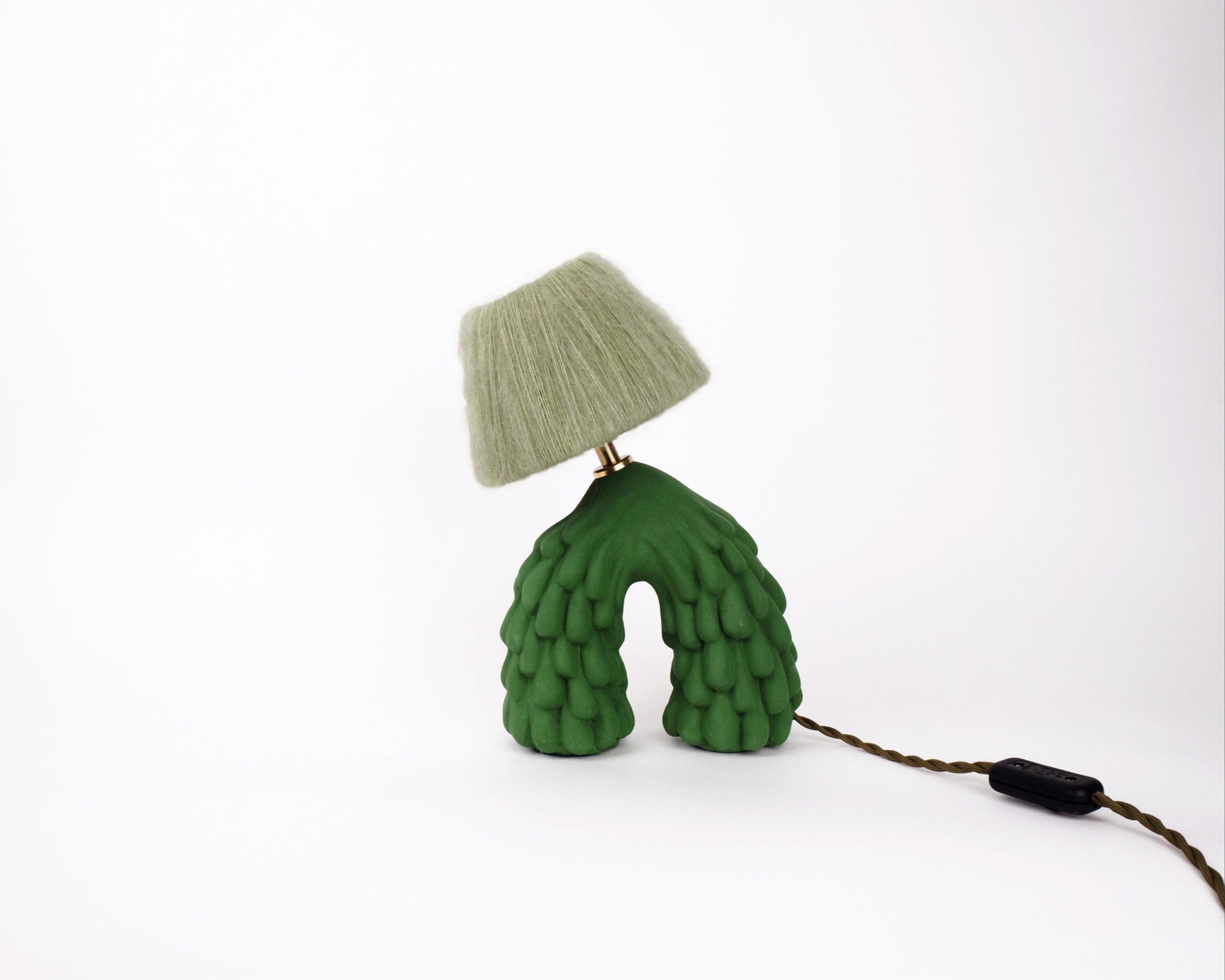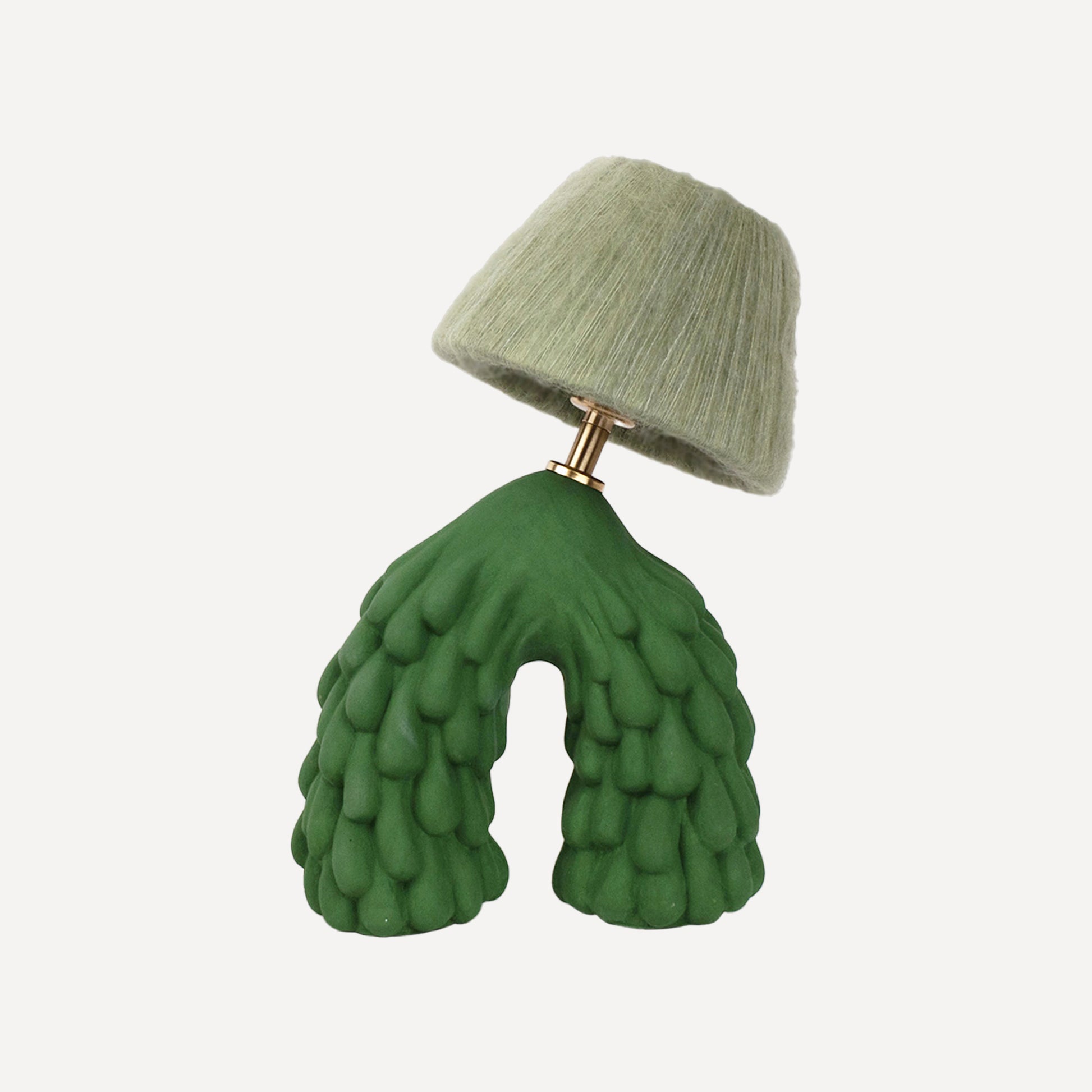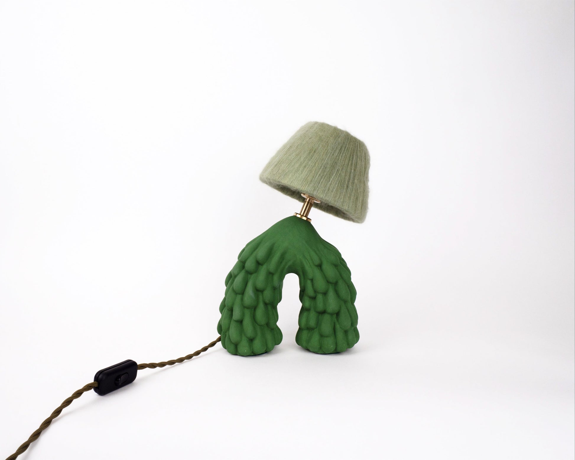 Handmade ceramic Green lamp base with a matte finish paired with an Apple Green wool shade