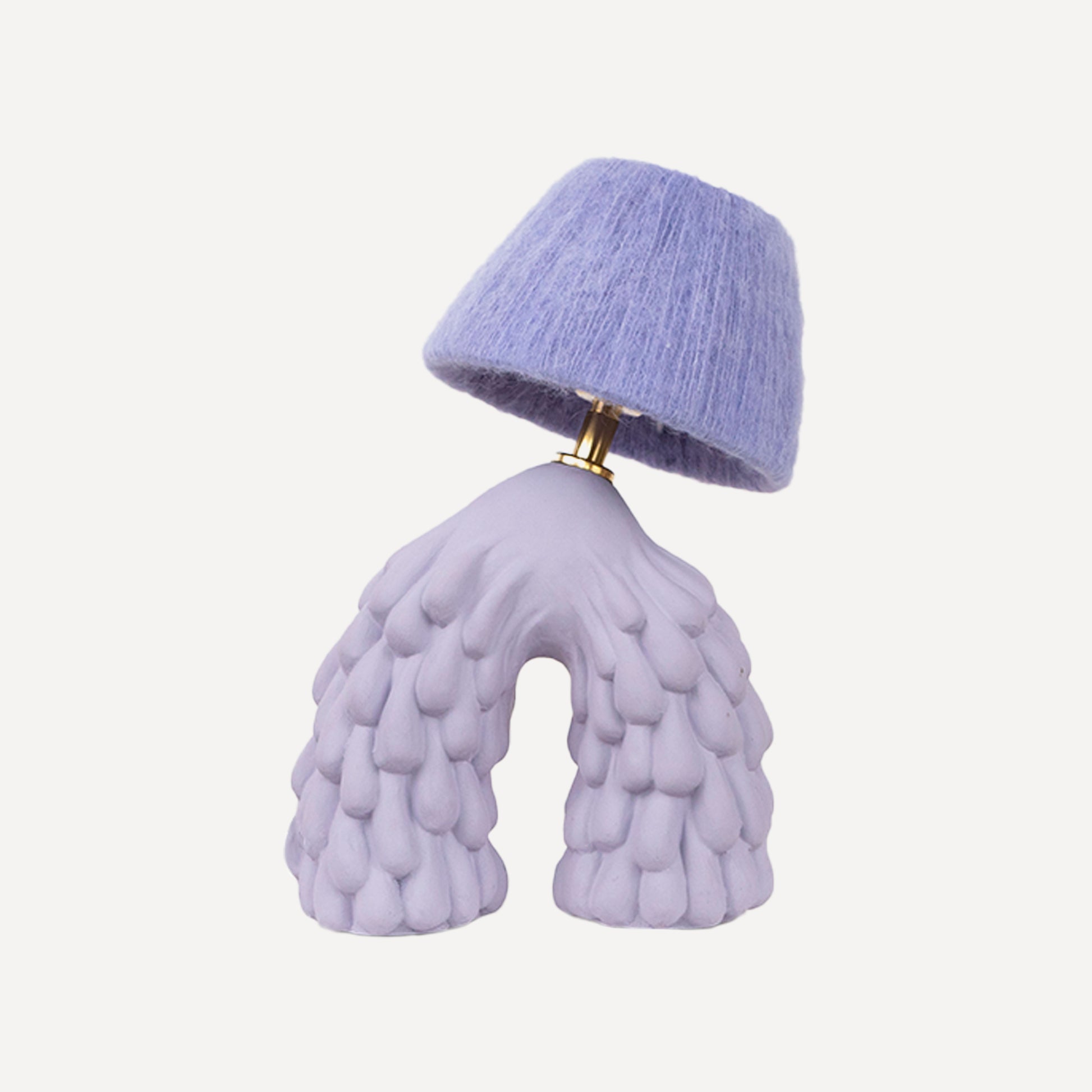 Handmade ceramic Wisteria Purple lamp base with a matte finish paired with a matching Light Lavender wool lampshade