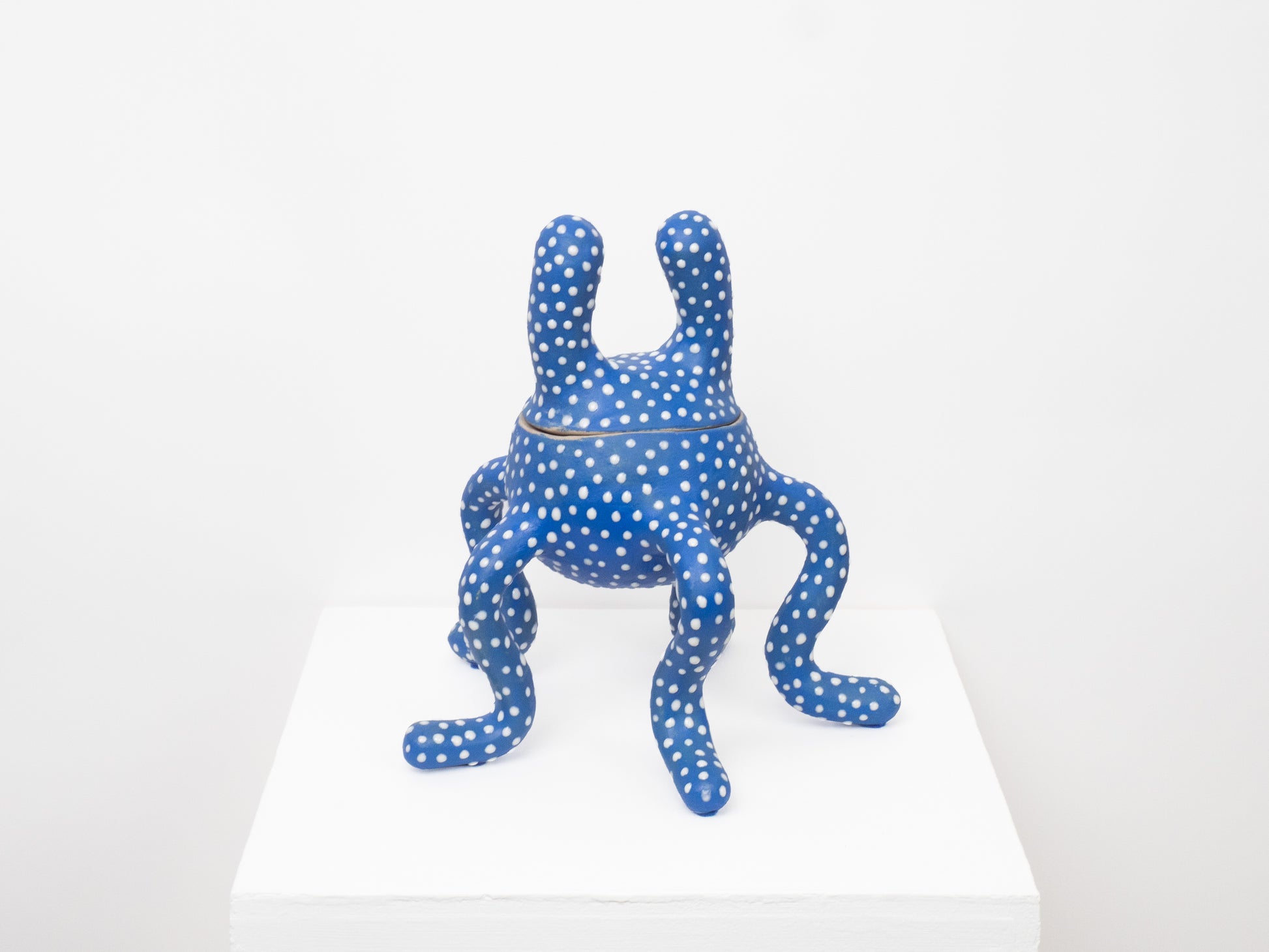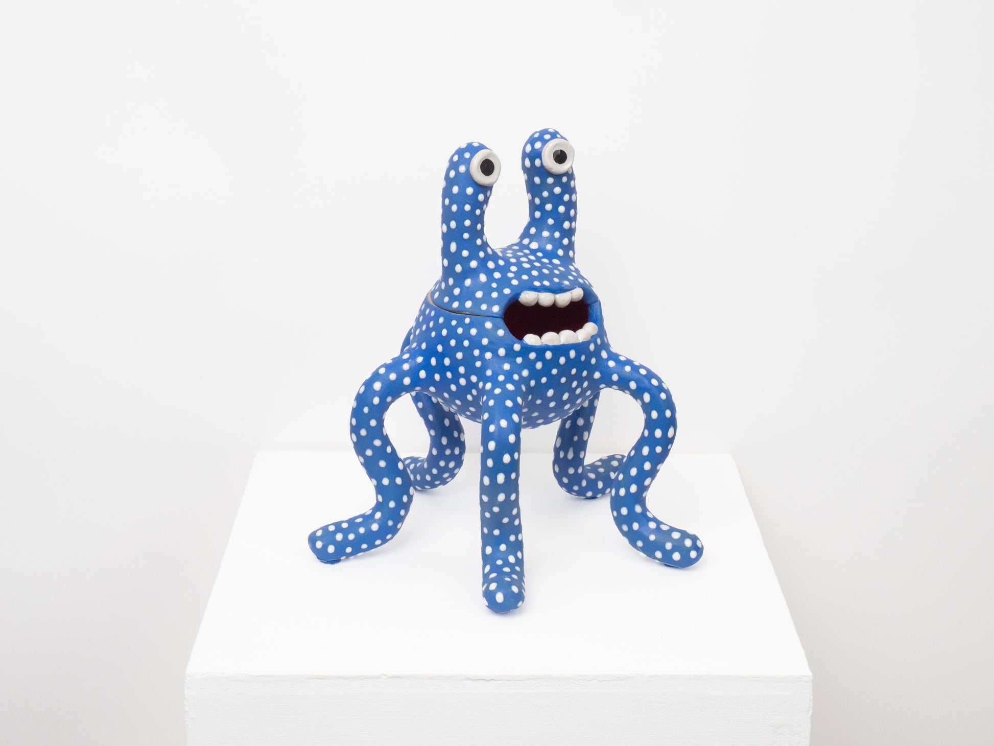 This monster pot is decorated with a vibrant blue glaze with white spots. The top of the monster's head can be lifted off to store trinkets or sweets inside. 'Odie' is always going to make you smile with its bright colours and goofy expressions.