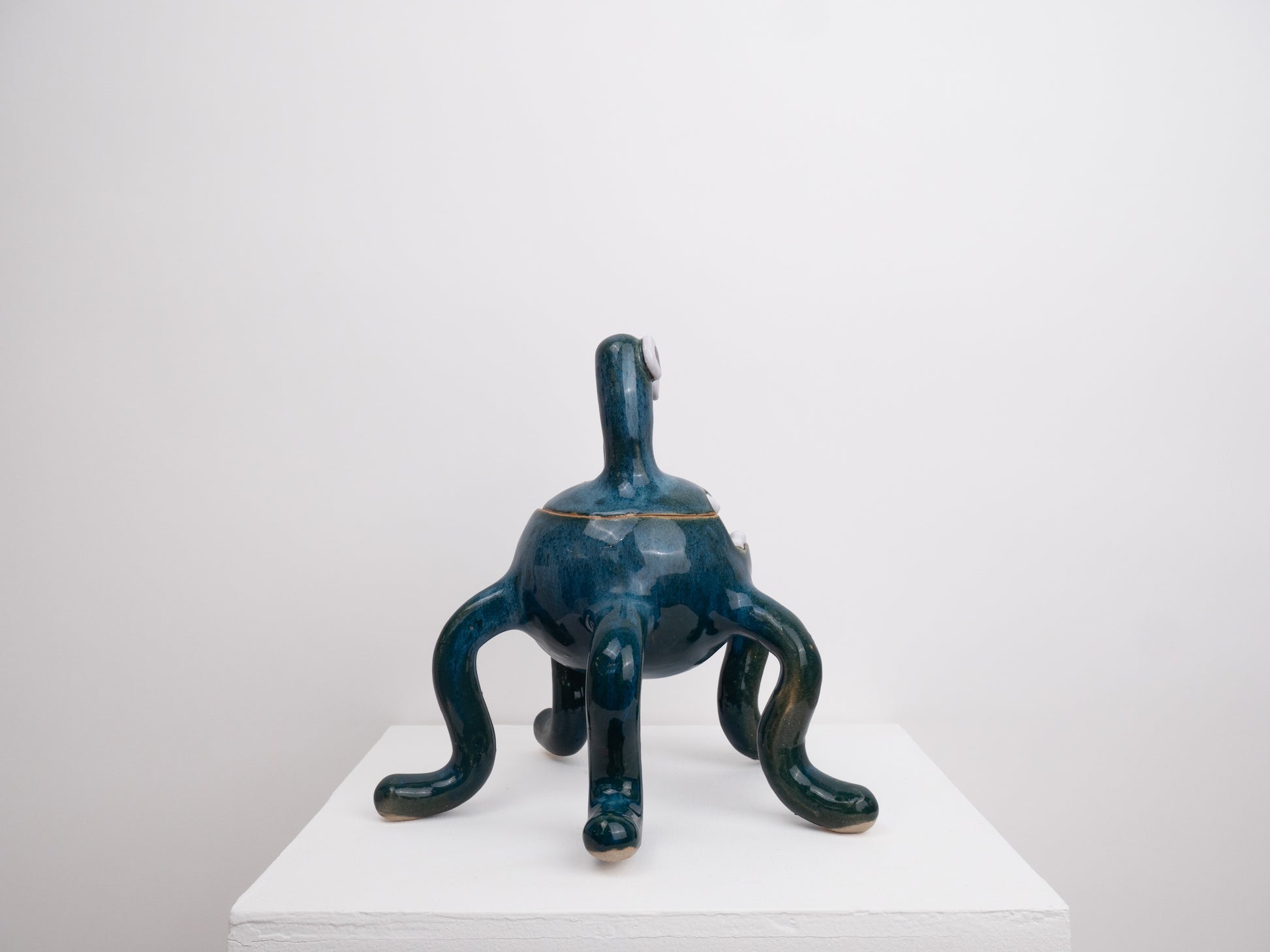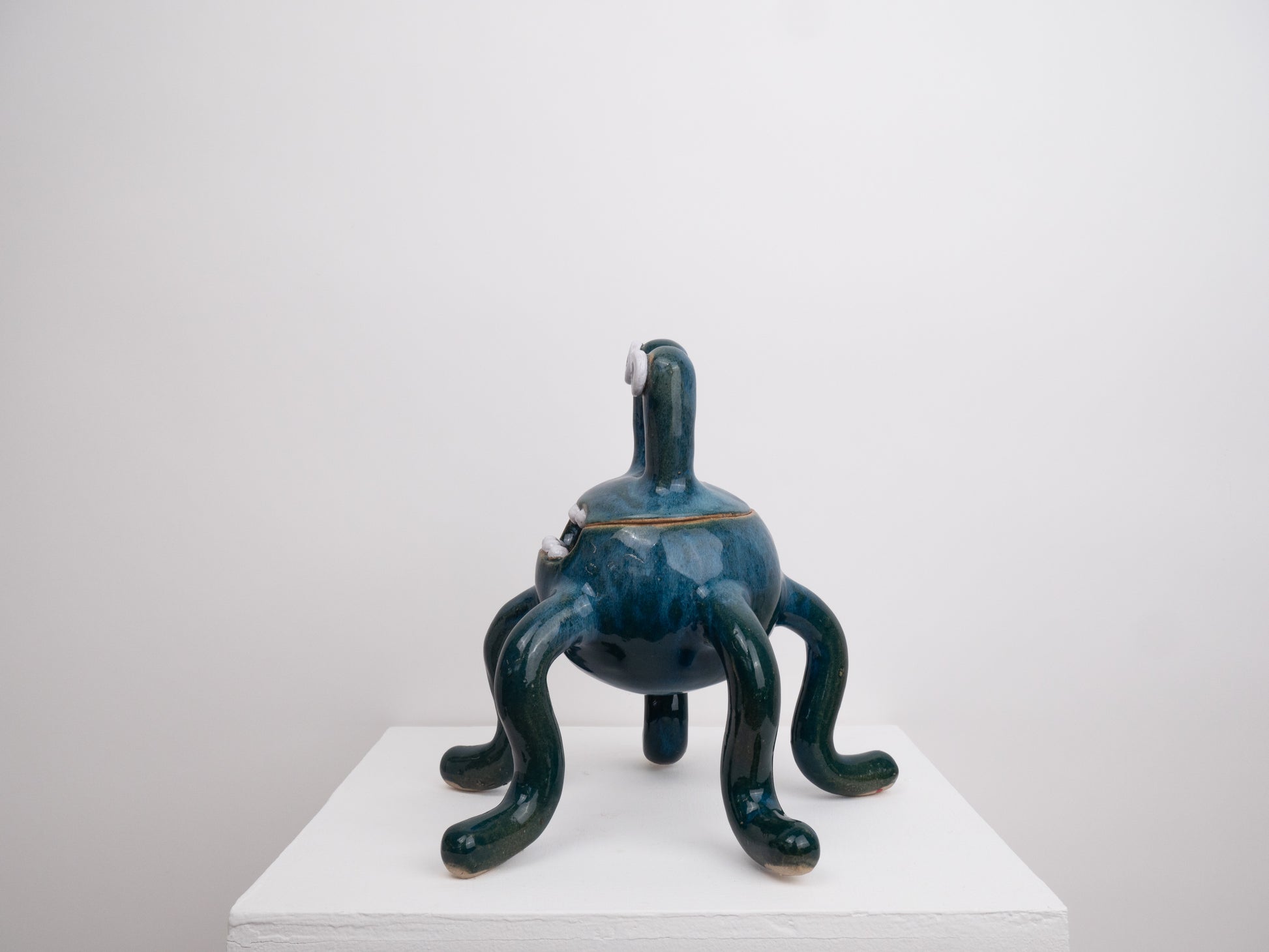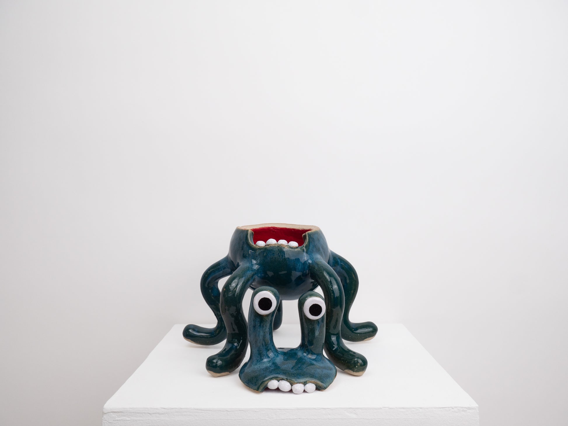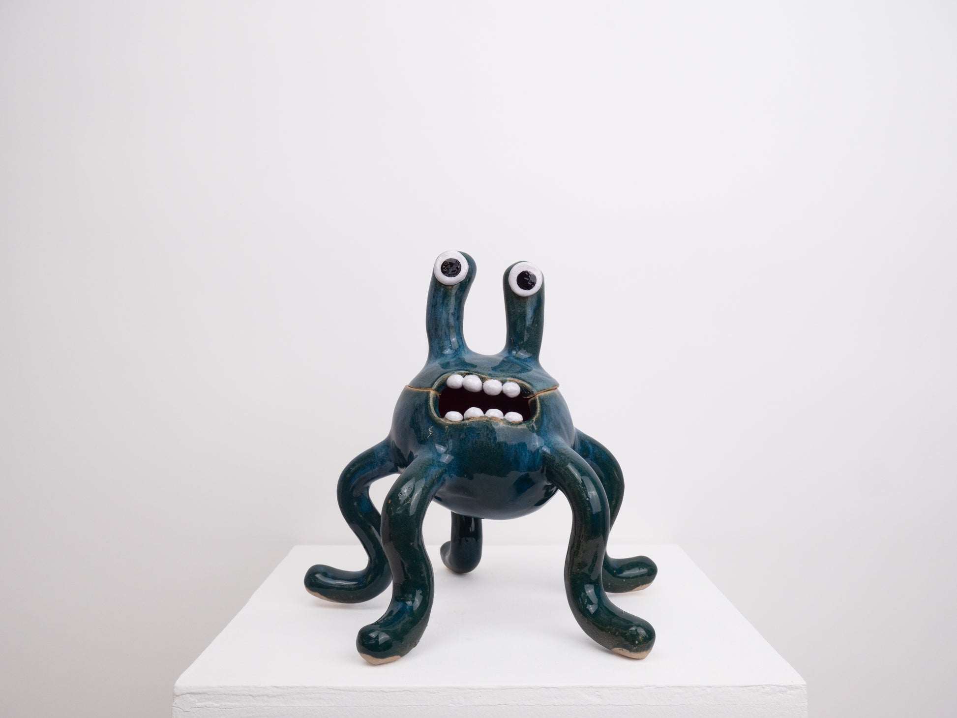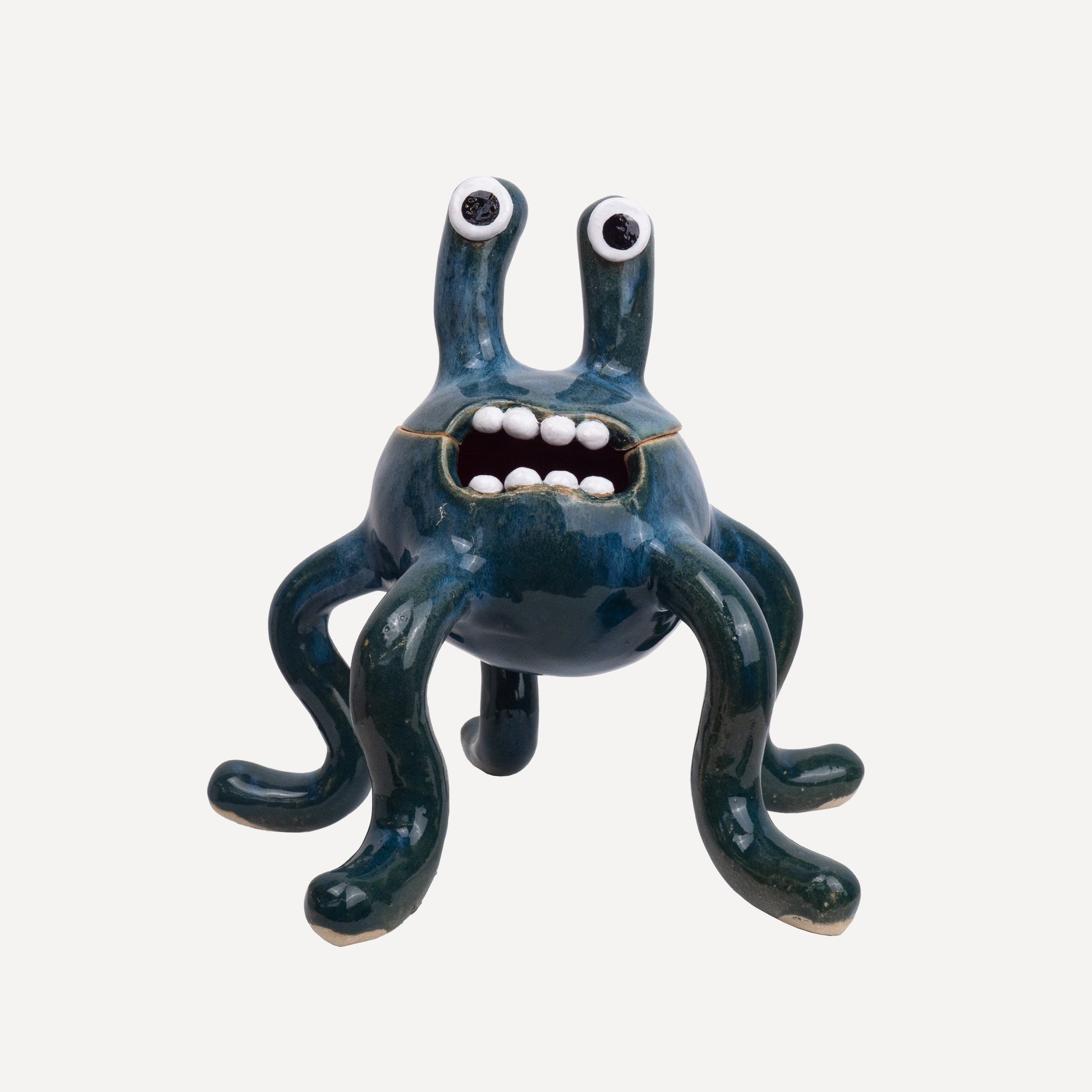 This monster pot is decorated with our 'Blue Pine' glaze which has a dark green colour mixed with blue tones throughout. The top of the monster's head can be lifted off to store trinkets or sweets inside. 'Odie' is always going to make you smile with its bright colours and goofy expressions.