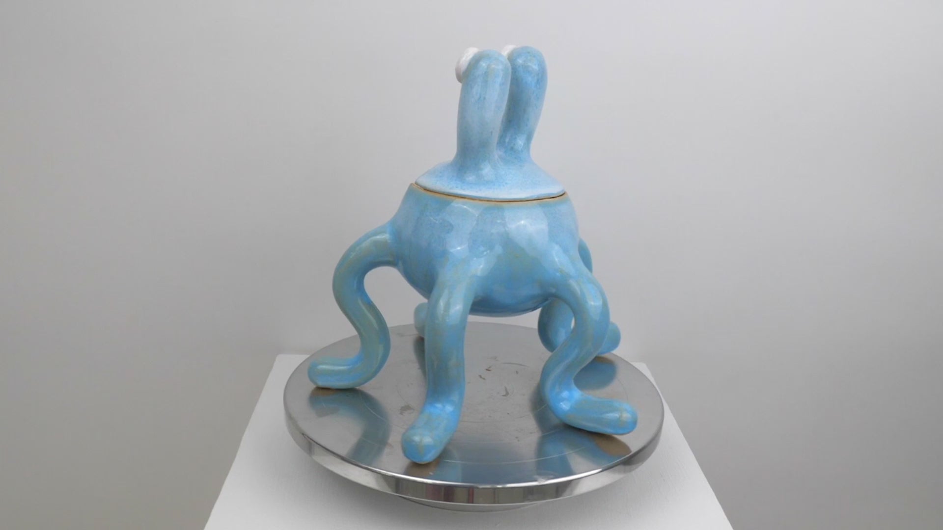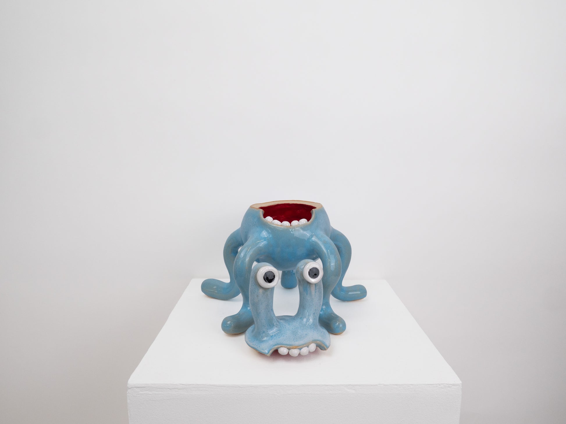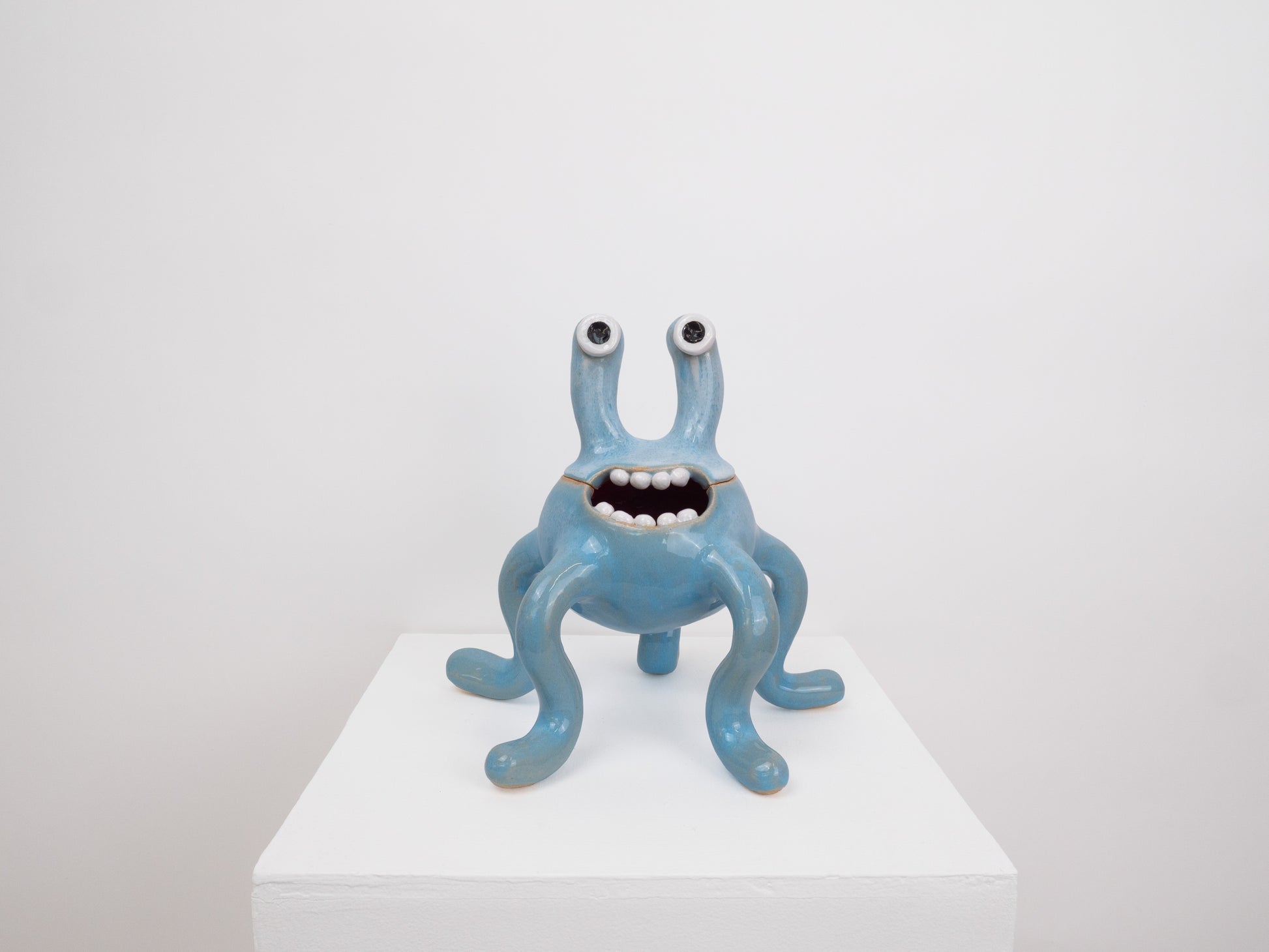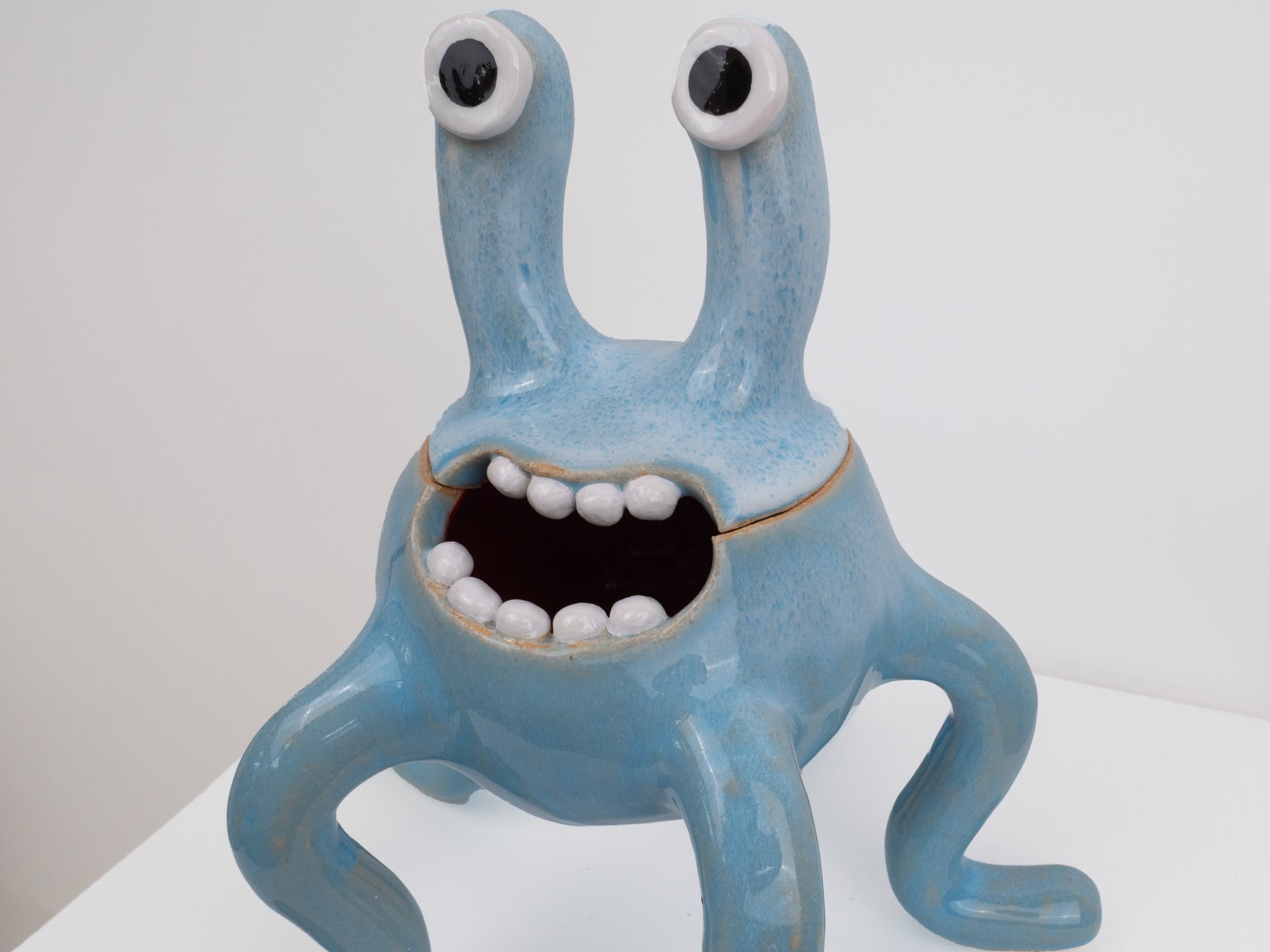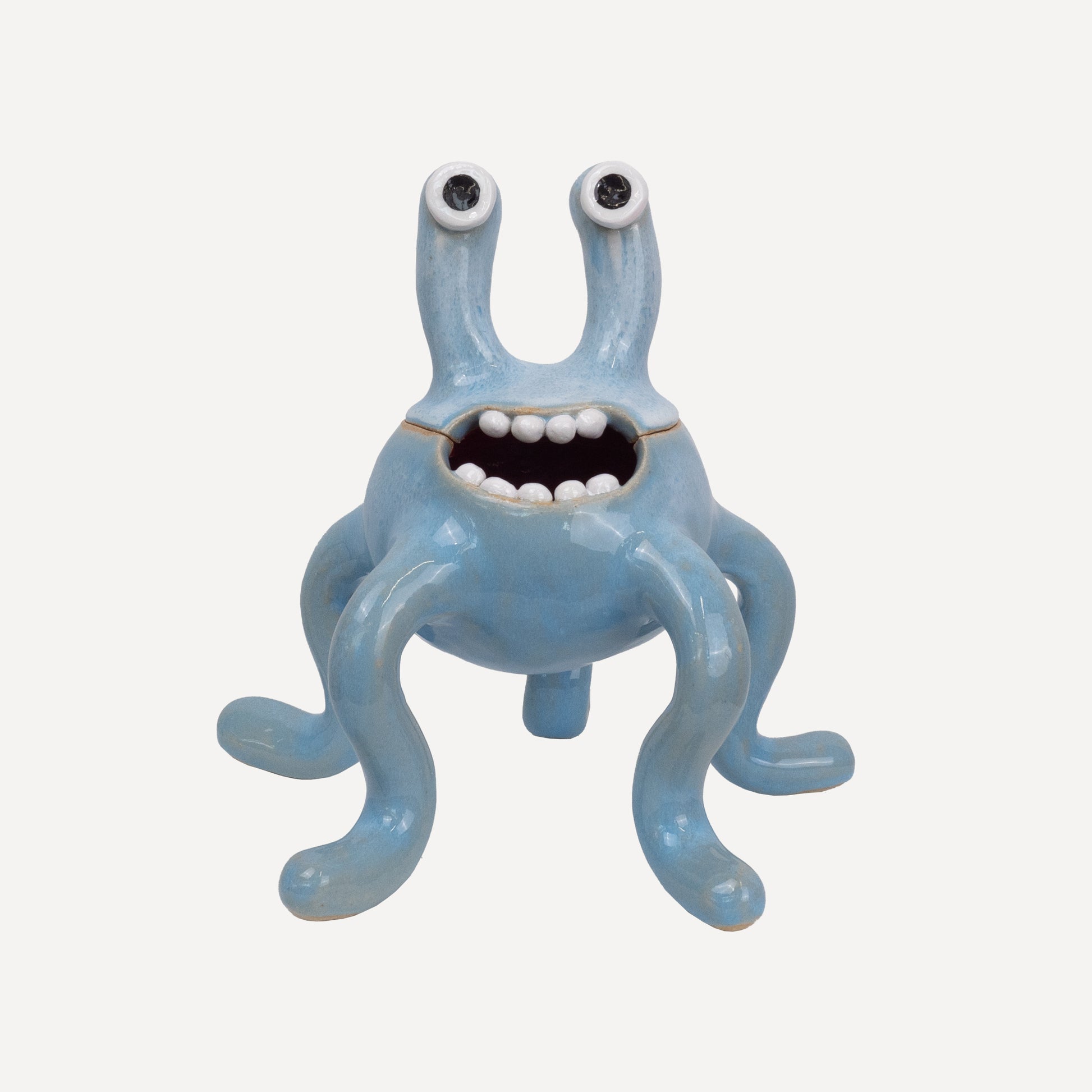 This monster pot is decorated with our 'Soft Sky' glaze which has light blue and white tones. The top of the monster's head can be lifted off to store trinkets or sweets inside. 'Odie' is always going to make you smile with its bright colours and goofy expressions.