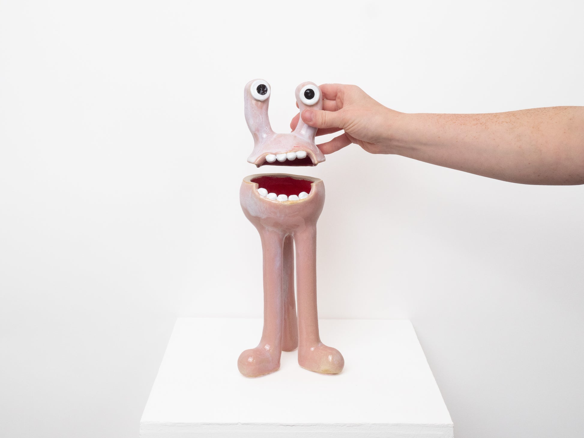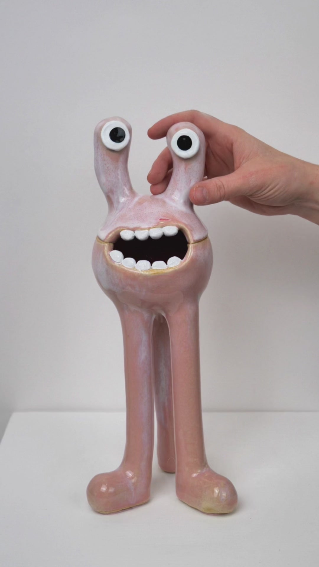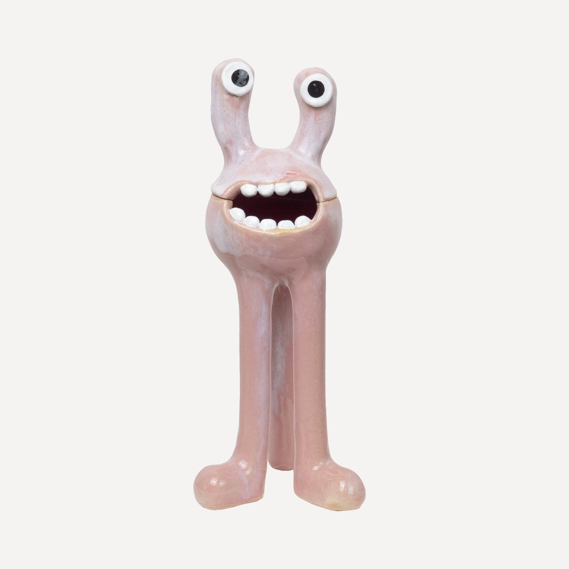 This 'Remy' monster is decorated with our 'Blush' glaze. This is a light pink colour with white diffused within. The 'Remy' monster doubles as a ceramic pot - perfect for storing all of your trinkets, sweets or any other goodies! The colourful pattern brings a joyous feeling to any space.