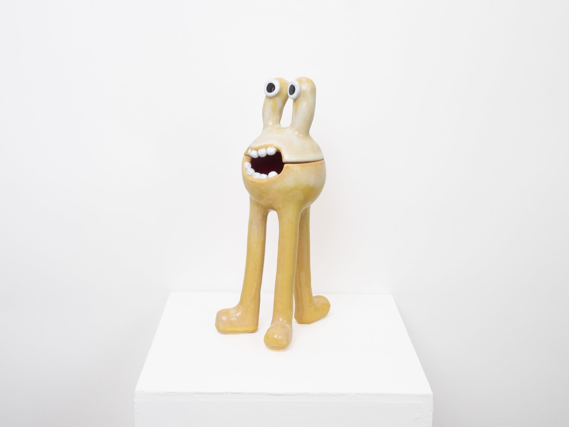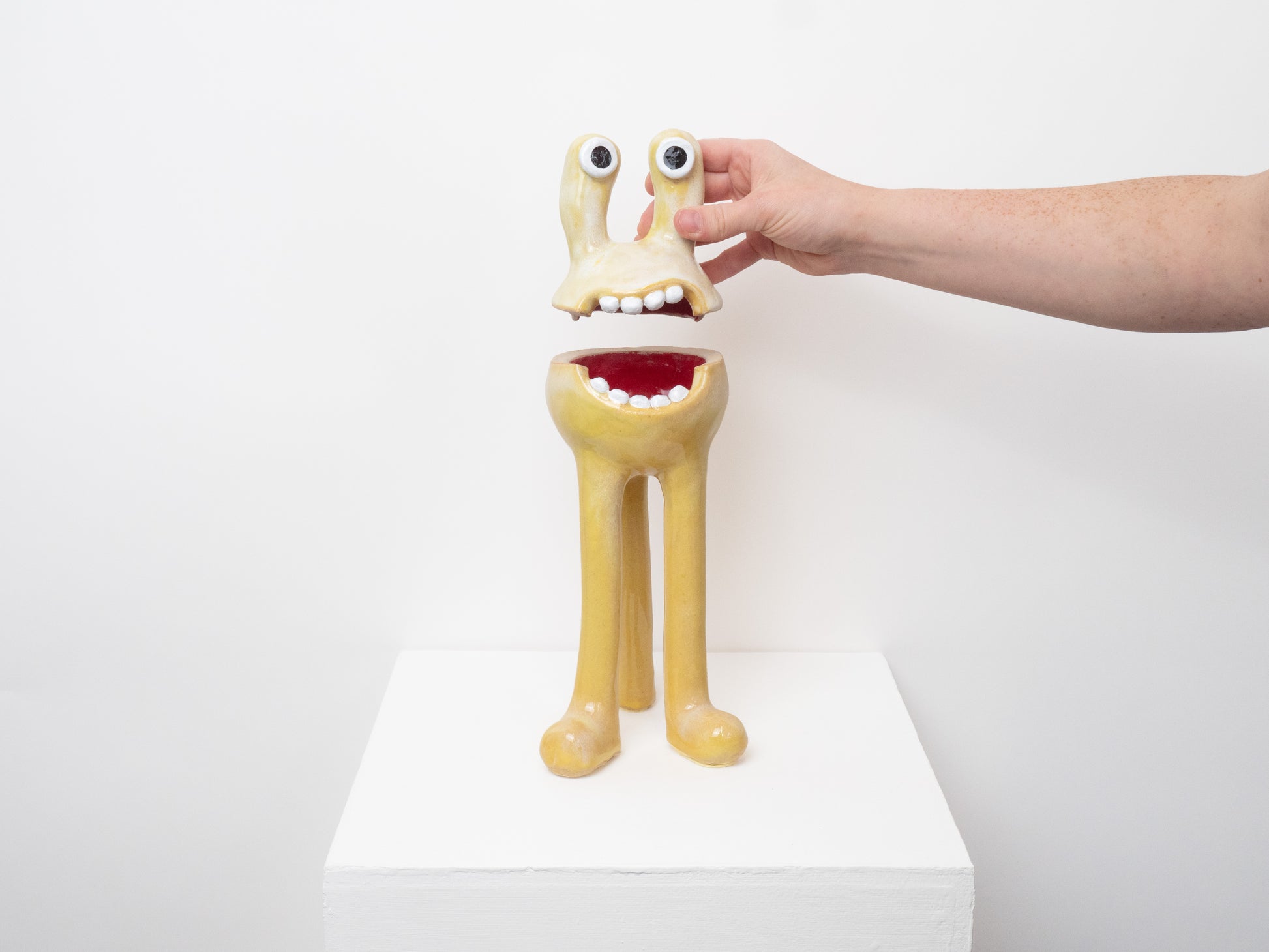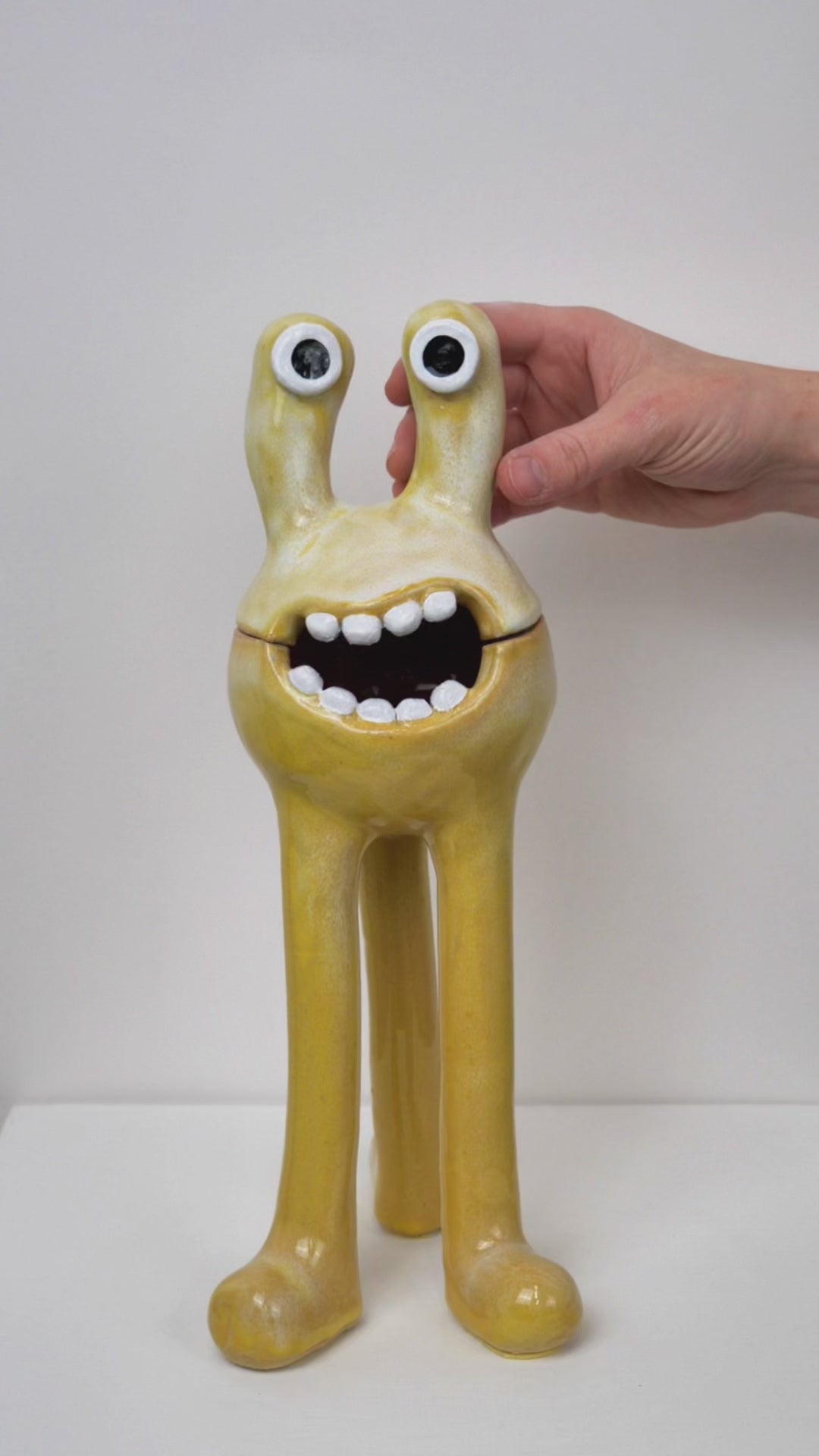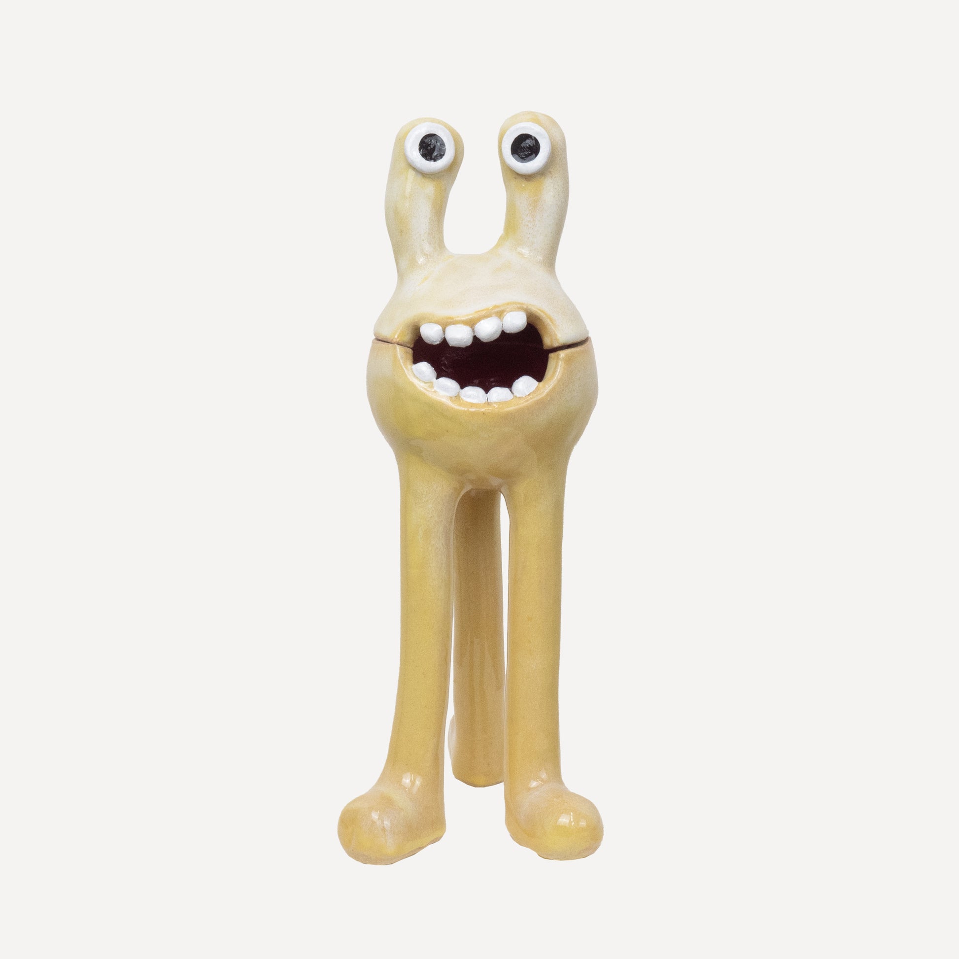 This 'Remy' monster is decorated with our 'Daisy' glaze. This is a Yellow colour with white diffused within. The 'Remy' monster doubles as a ceramic pot - perfect for storing all of your trinkets, sweets or any other goodies! The colourful pattern brings a joyous feeling to any space.