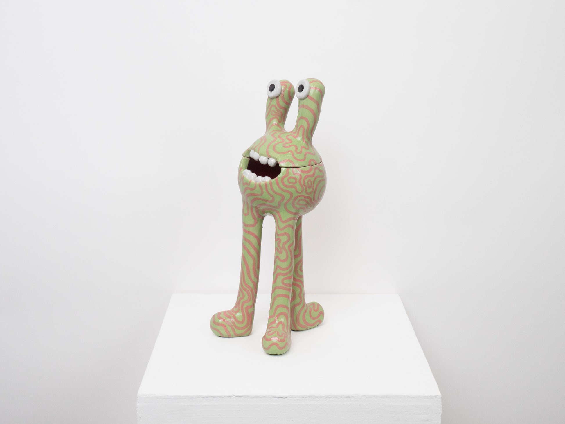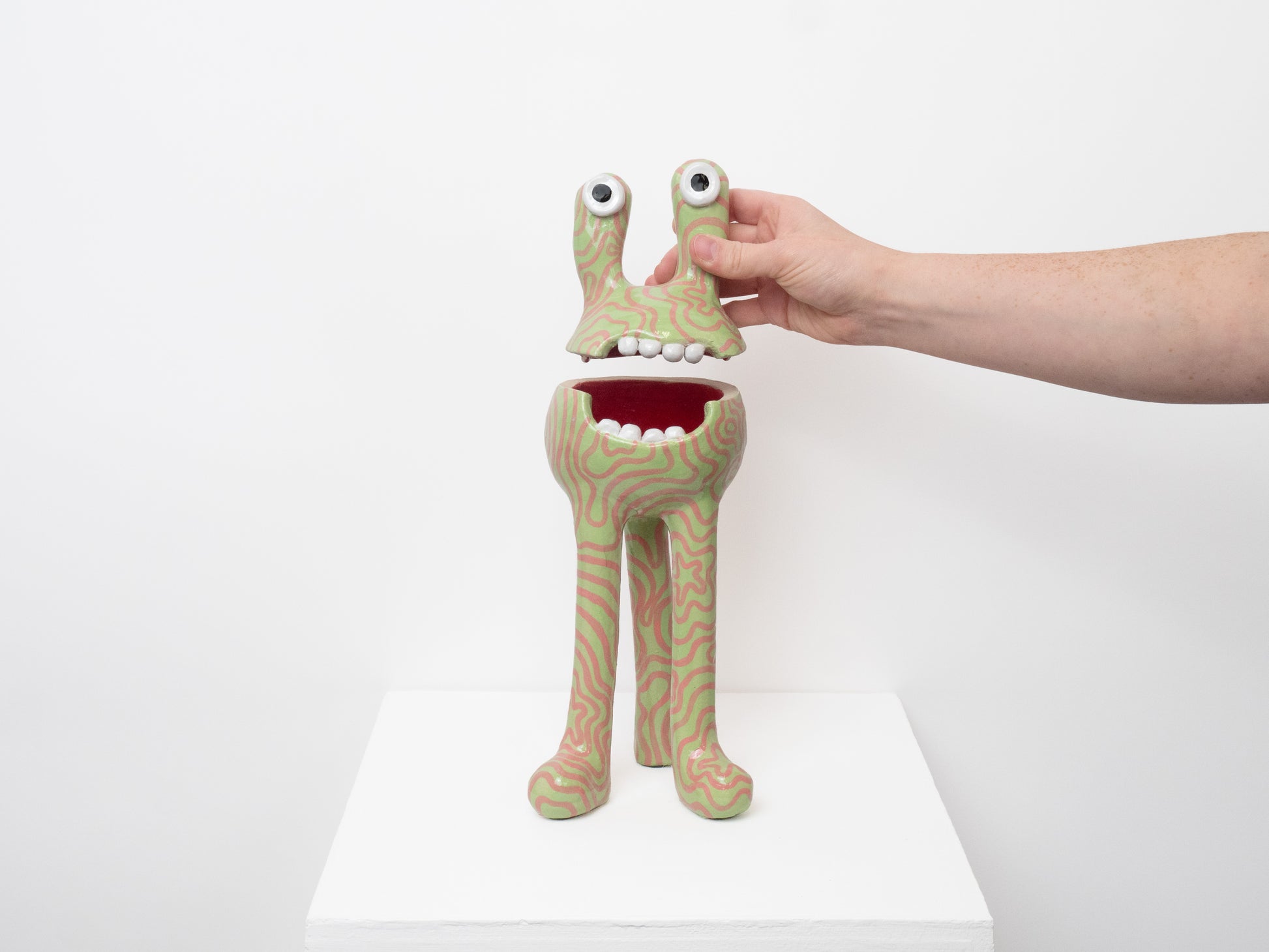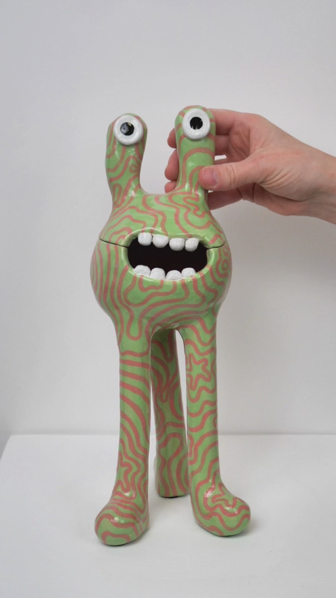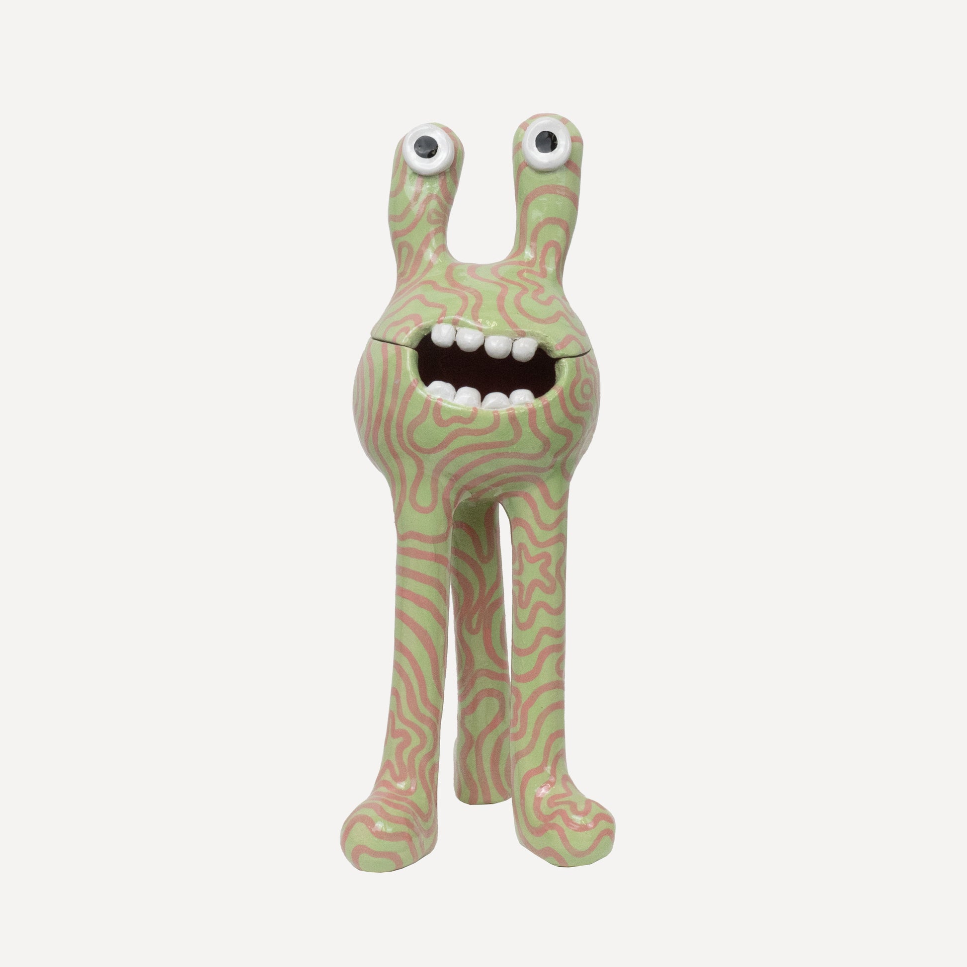 This 'Remy' monster is decorated with a green and pink pattern then finished with a glossy glaze. The 'Remy' monster doubles as a ceramic pot - perfect for storing all of your trinkets, sweets or any other goodies! The colourful pattern brings a joyous feeling to any space.