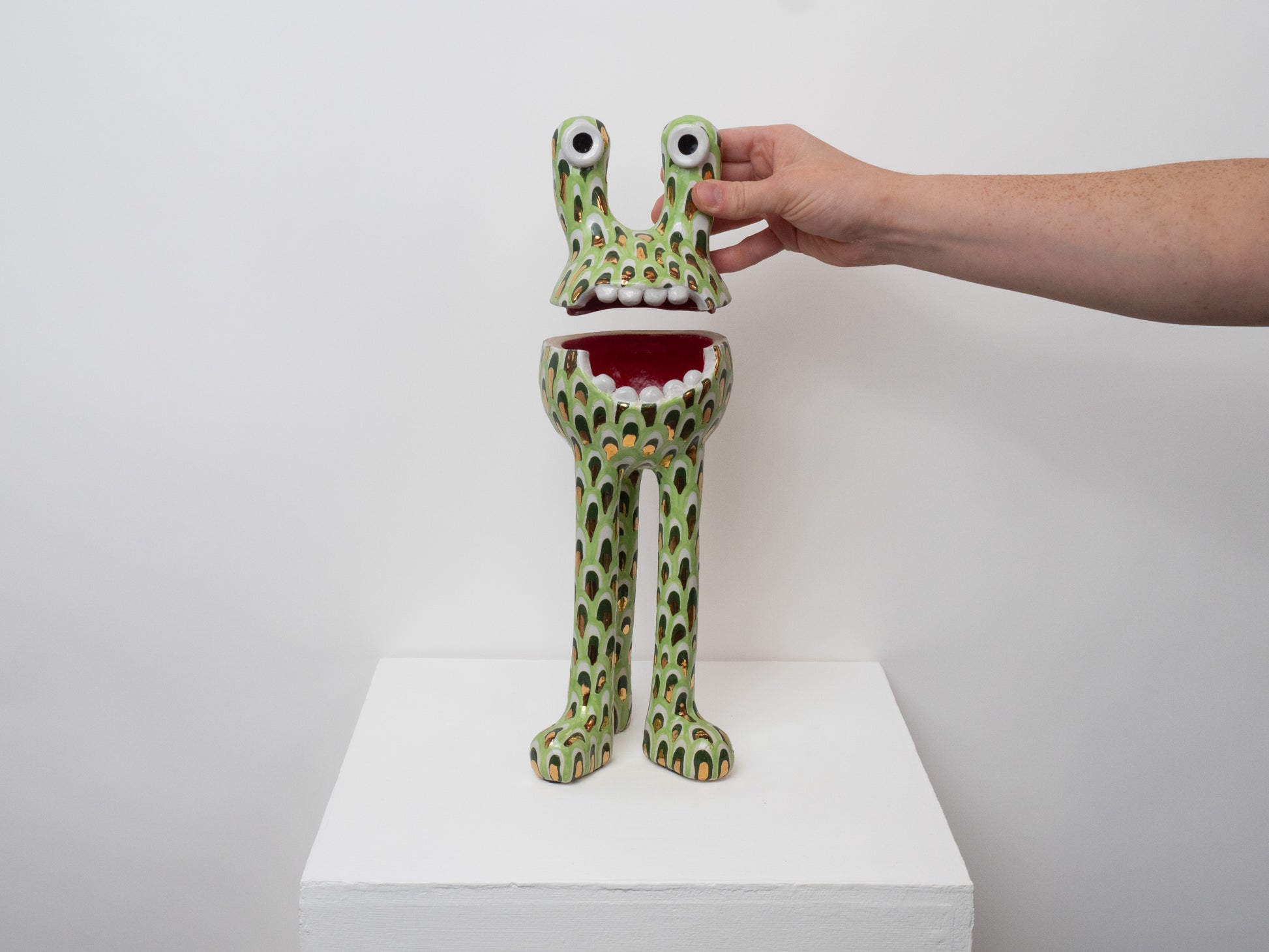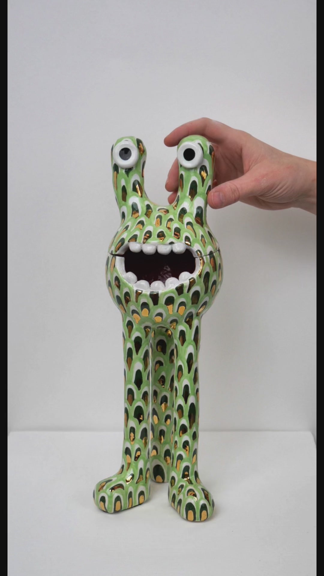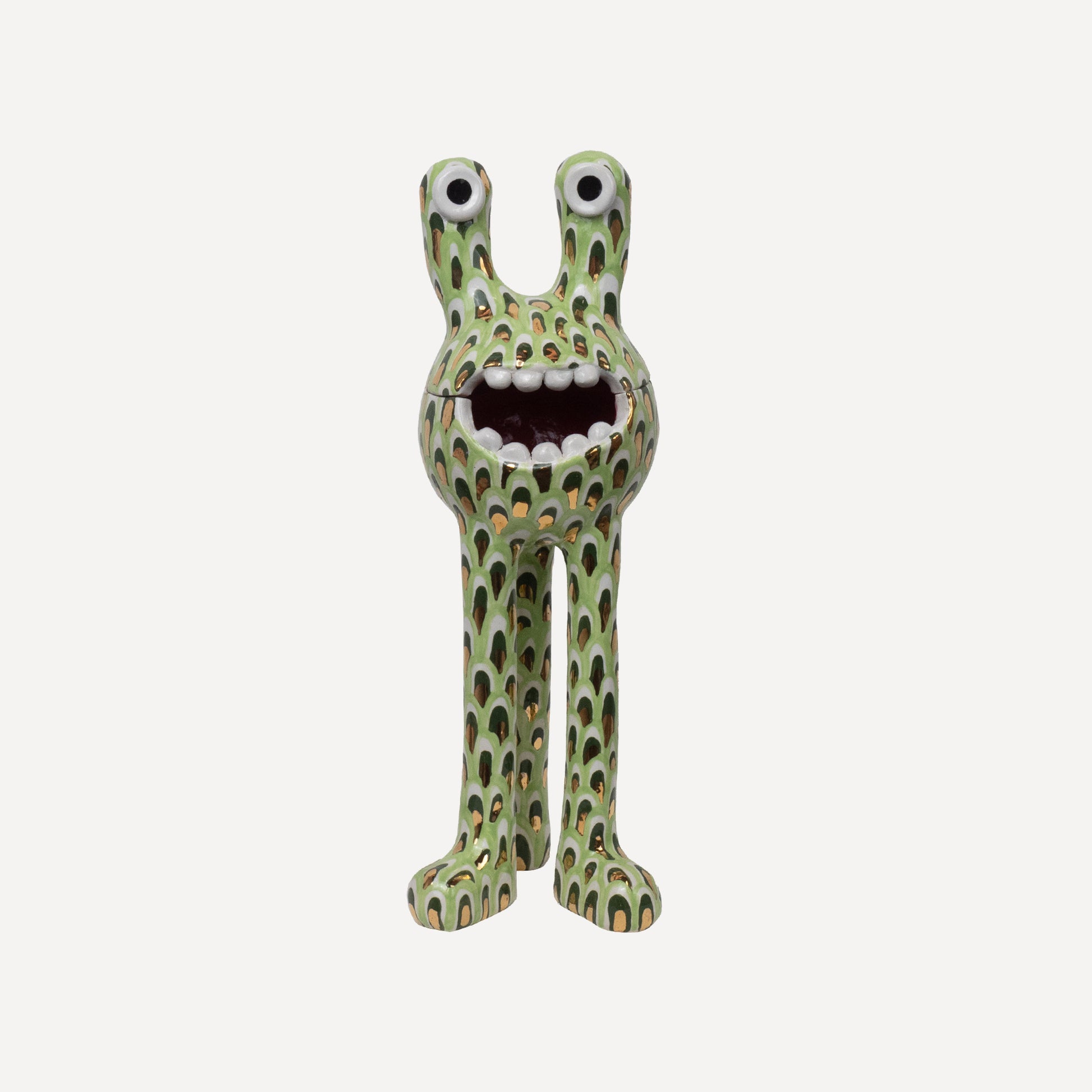 This 'Remy' monster is decorated with a petal pattern and finished with a gloss glaze. The 'Remy' monster doubles as a ceramic pot - perfect for storing all of your trinkets, sweets or any other goodies! The colourful pattern brings a joyous feeling to any space.