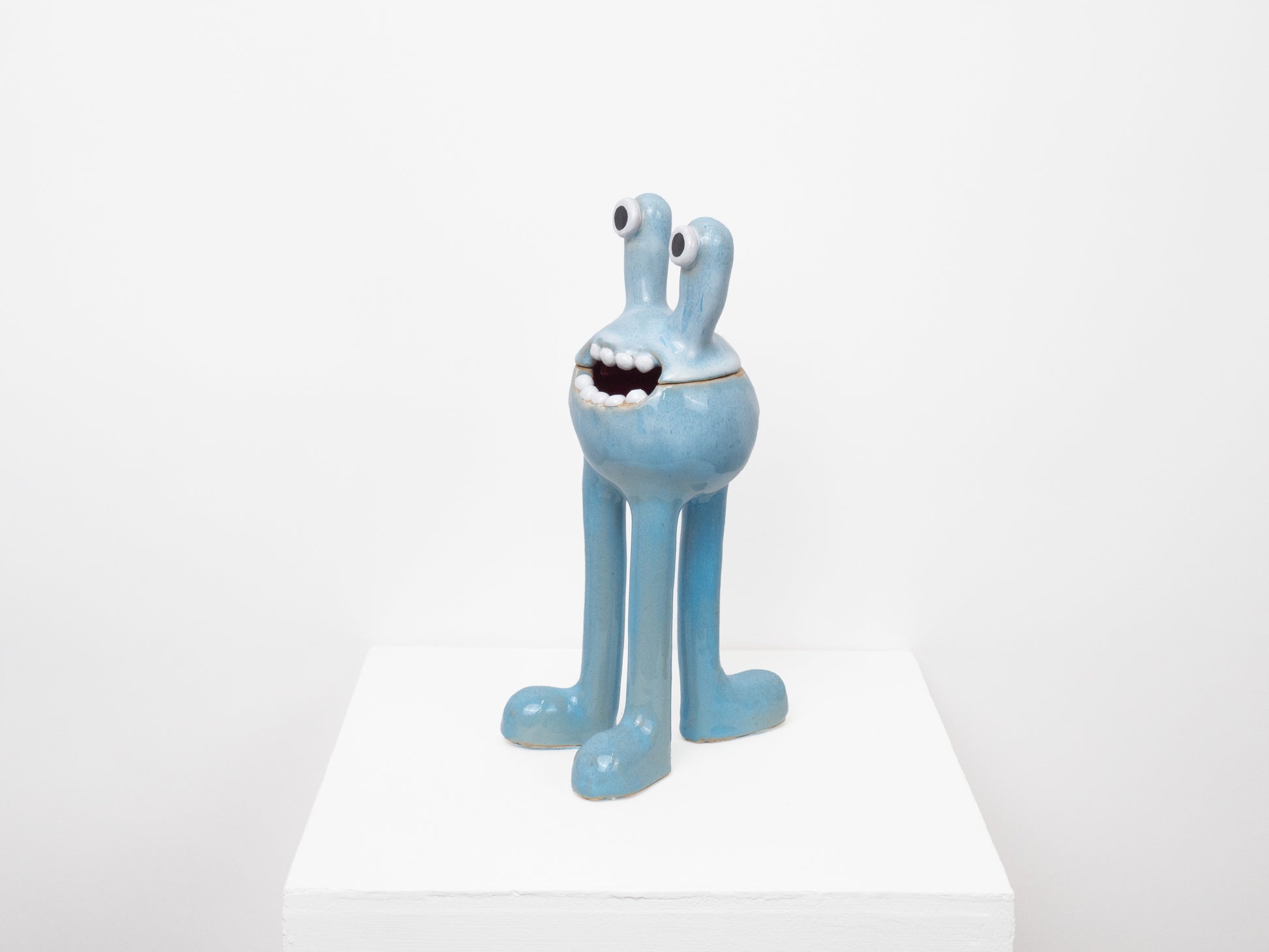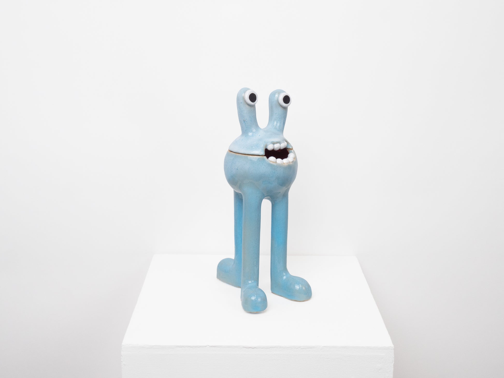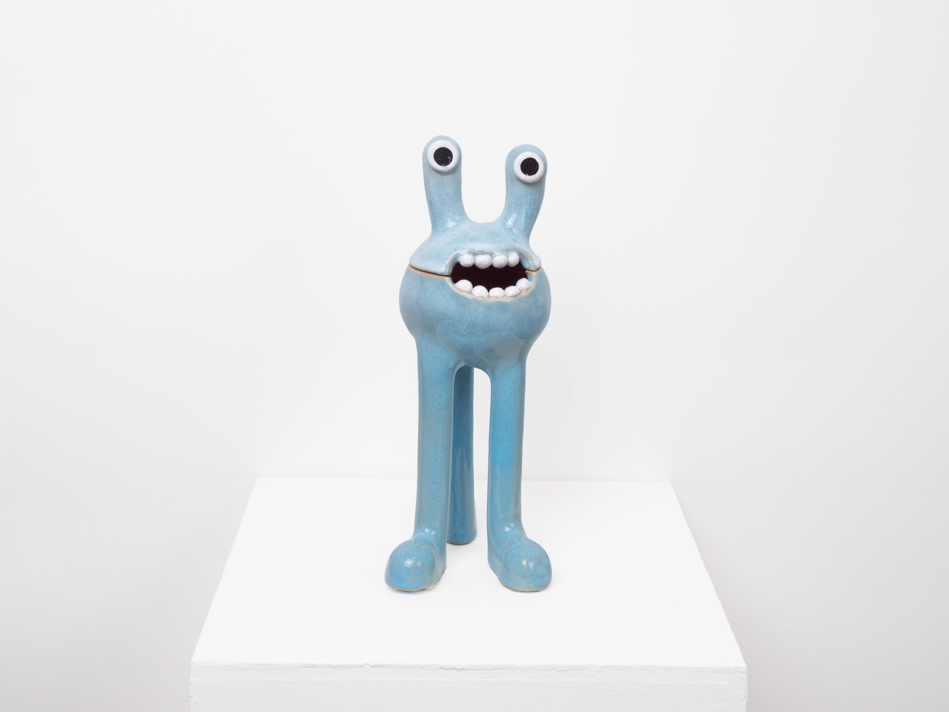 This 'Remy' monster is decorated with our 'Soft Sky' glaze. This is a light blue colour with white diffused within. The 'Remy' monster doubles as a ceramic pot - perfect for storing all of your trinkets, sweets or any other goodies! The colourful pattern brings a joyous feeling to any space.