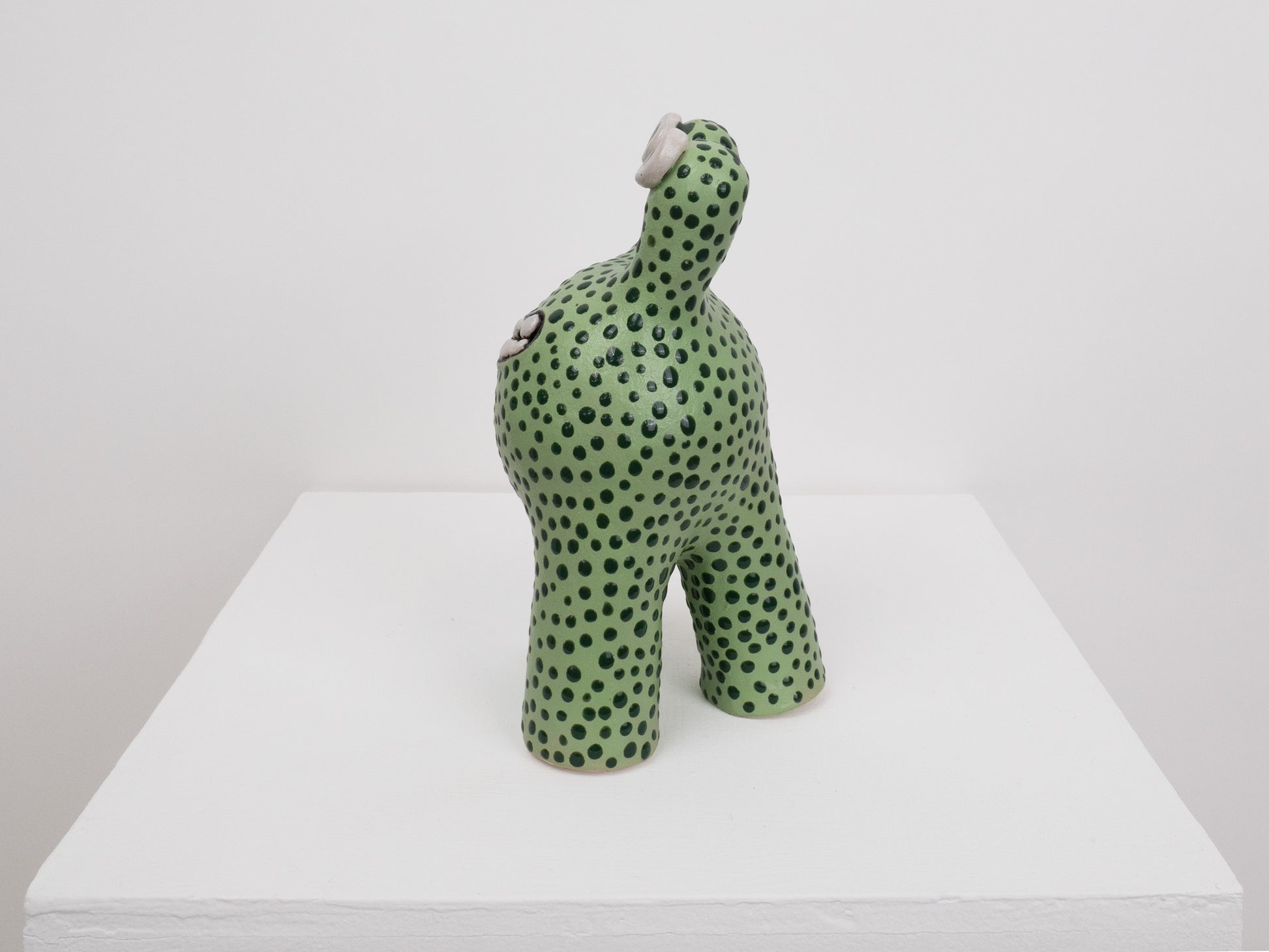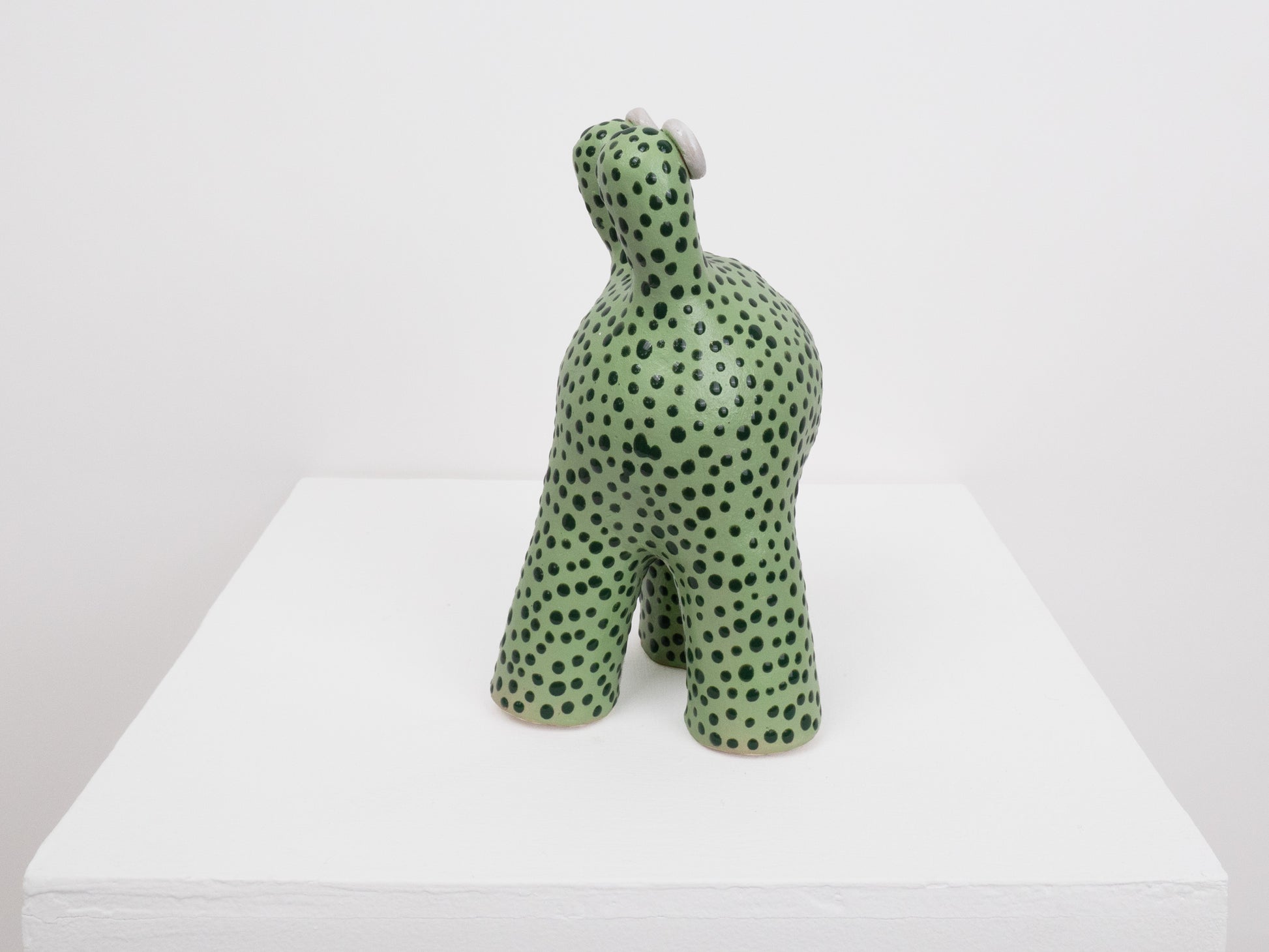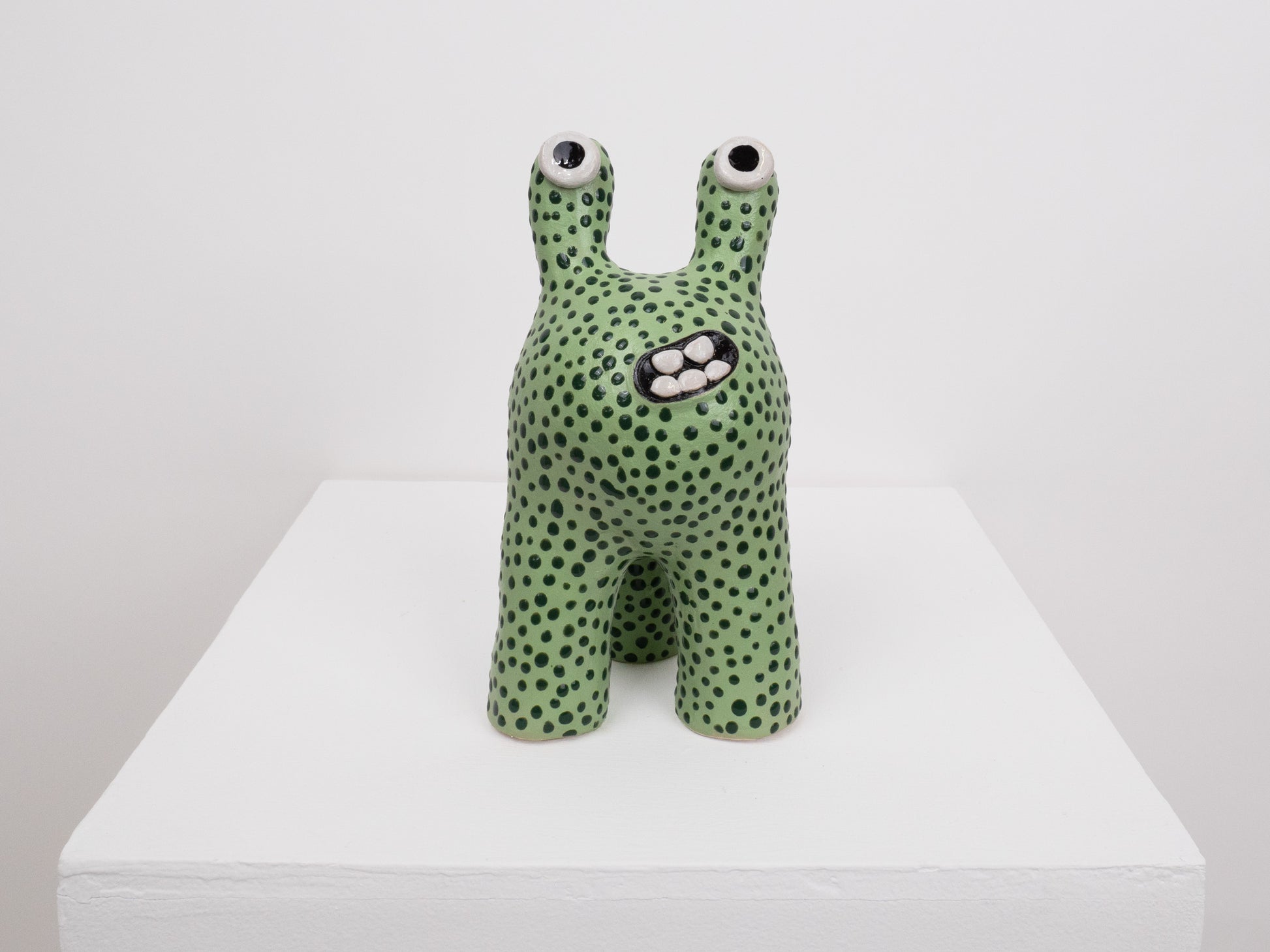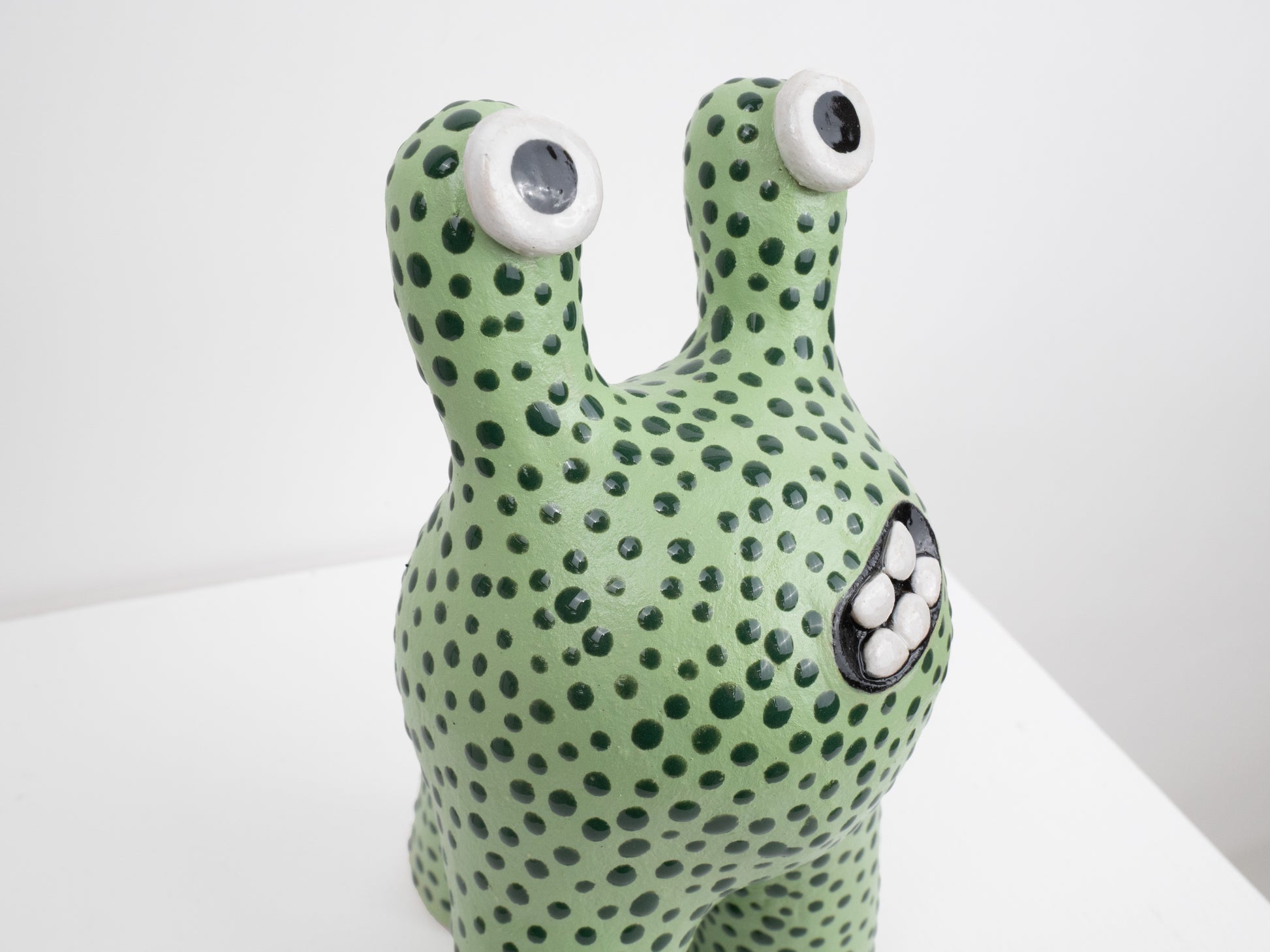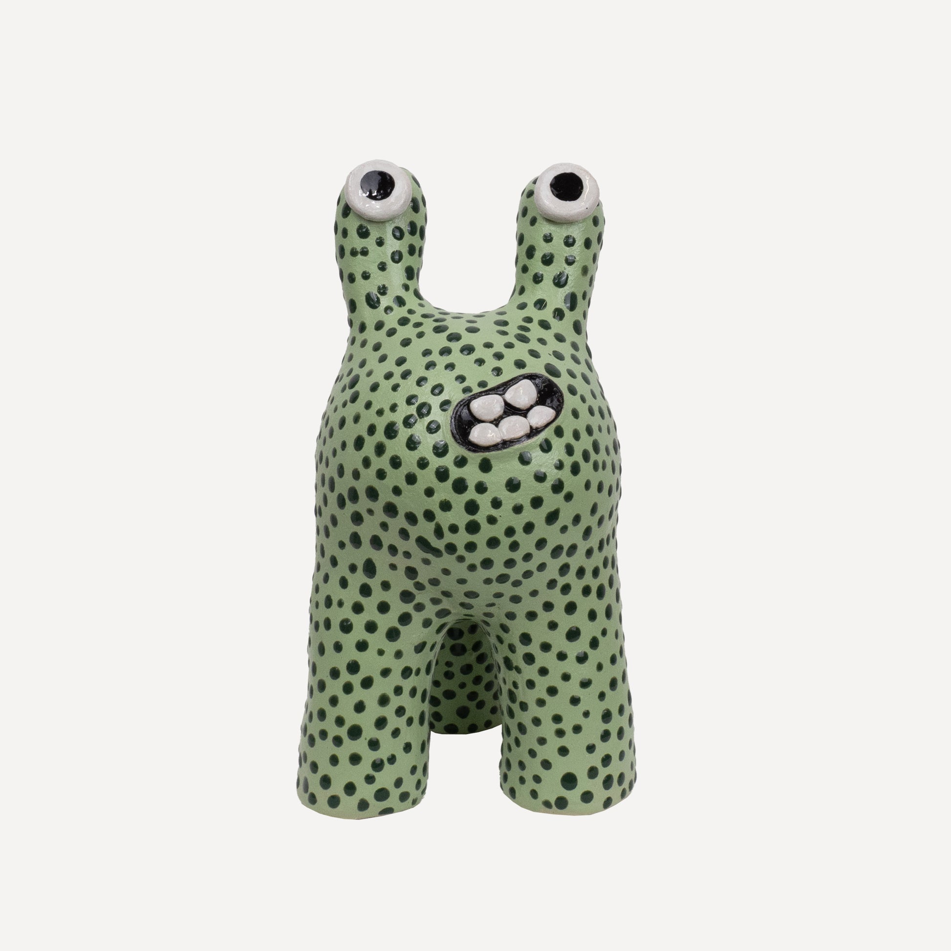 'Tully' is one of our most classic monster designs. Its humorous and upbeat energy brings joy to any room. This 'Tully' monster has been decorated with a light green matte base with a glossy dark green glaze.