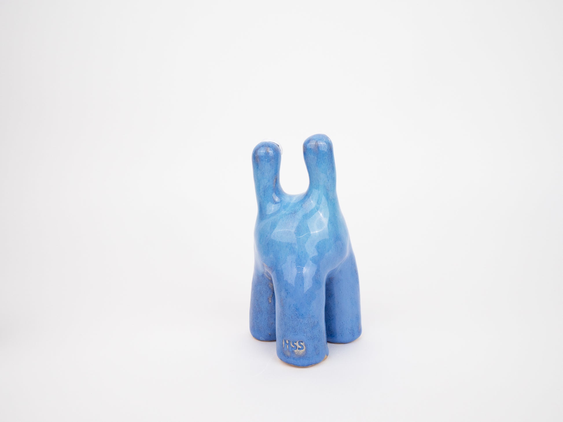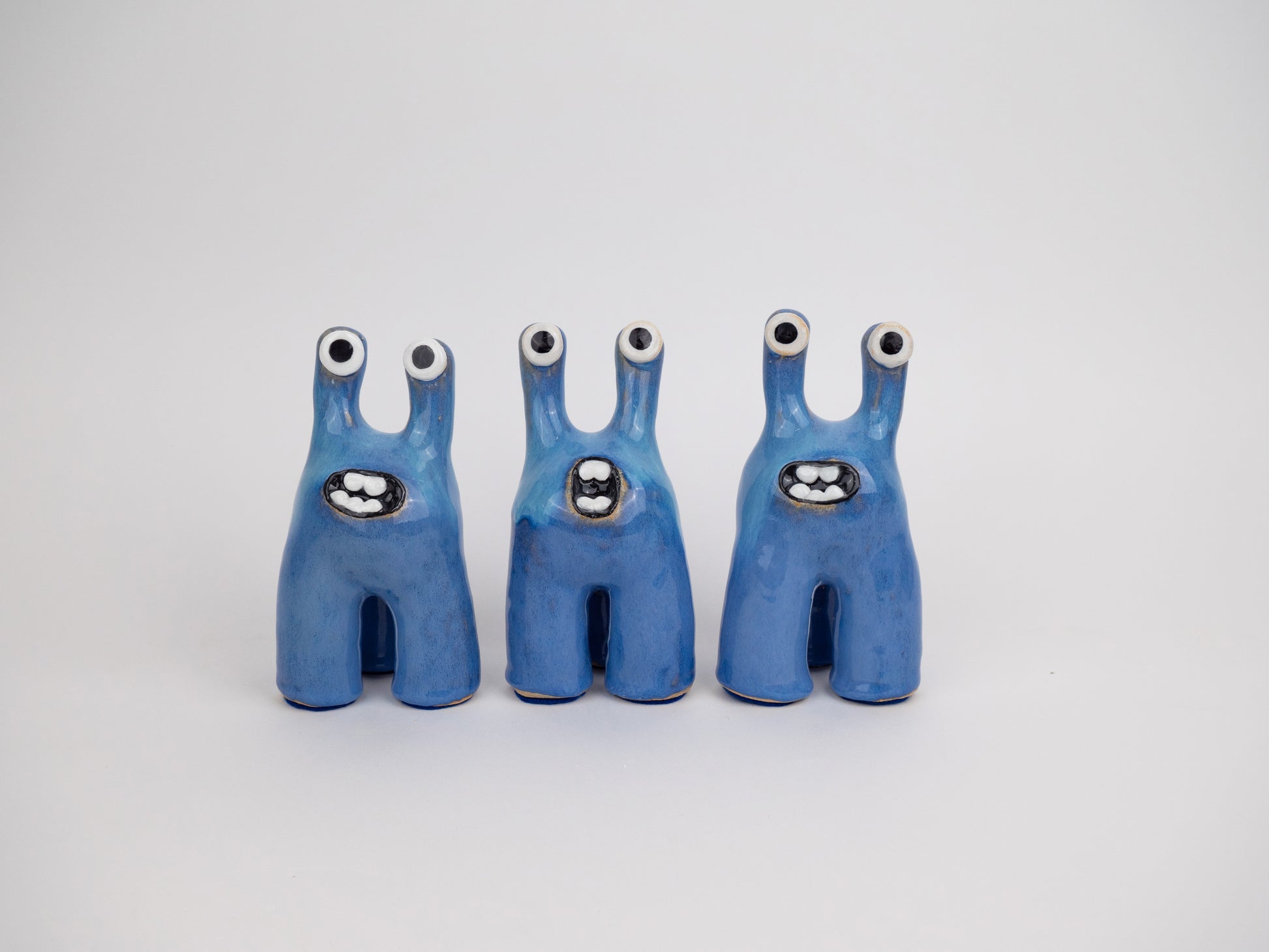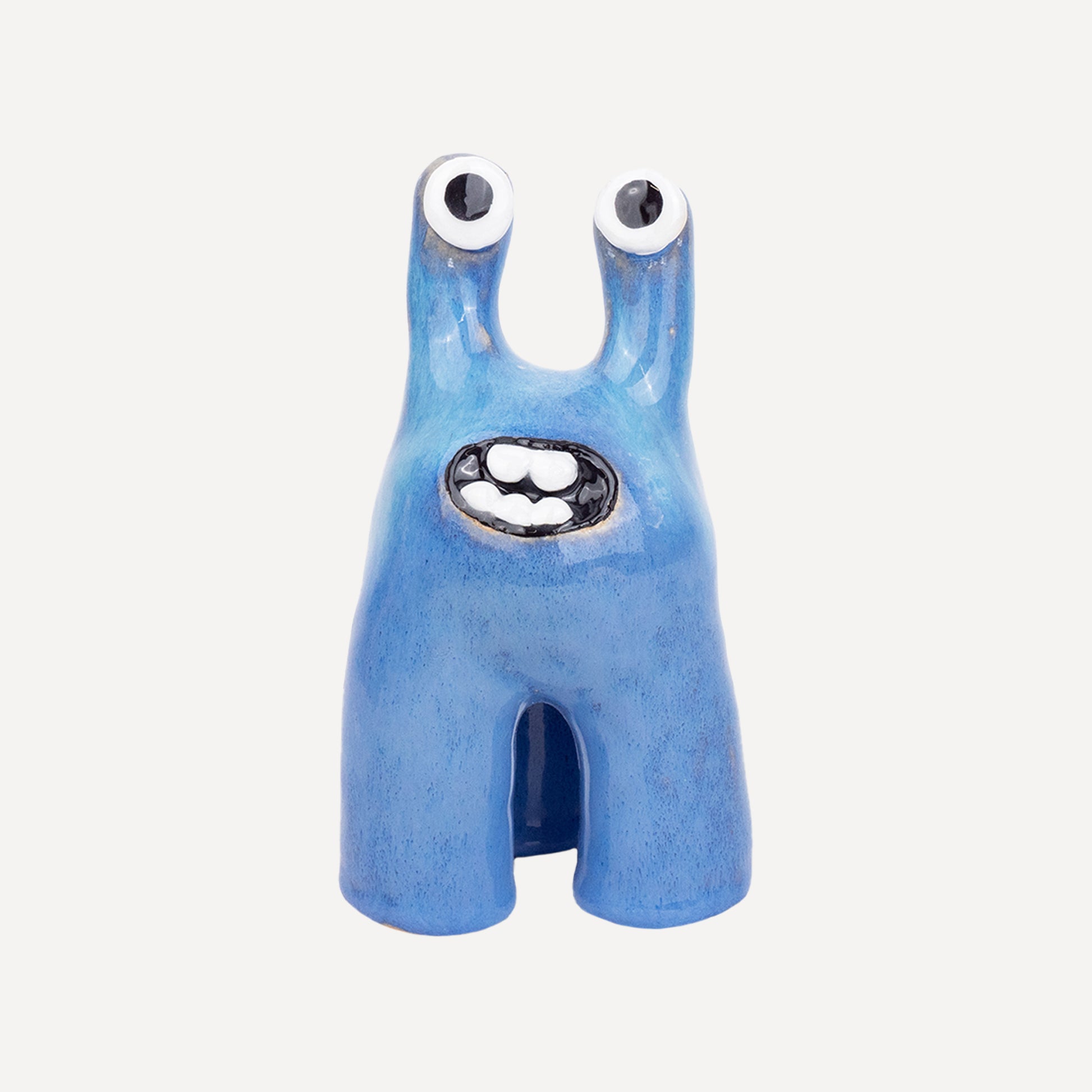 Tully is one of our most classic monster designs. Its humorous and upbeat energy brings joy to any room. This Tully monster has been decorated by layering glazes made at Hannah Simpson Studio to create a beautiful bright blue finish with striking depth.